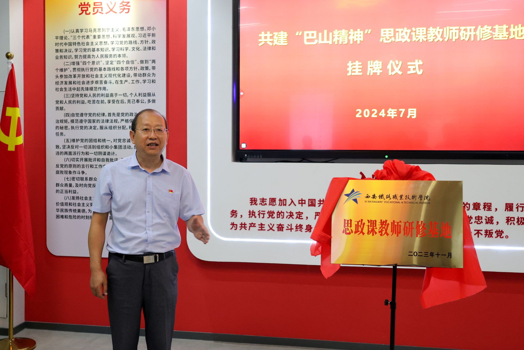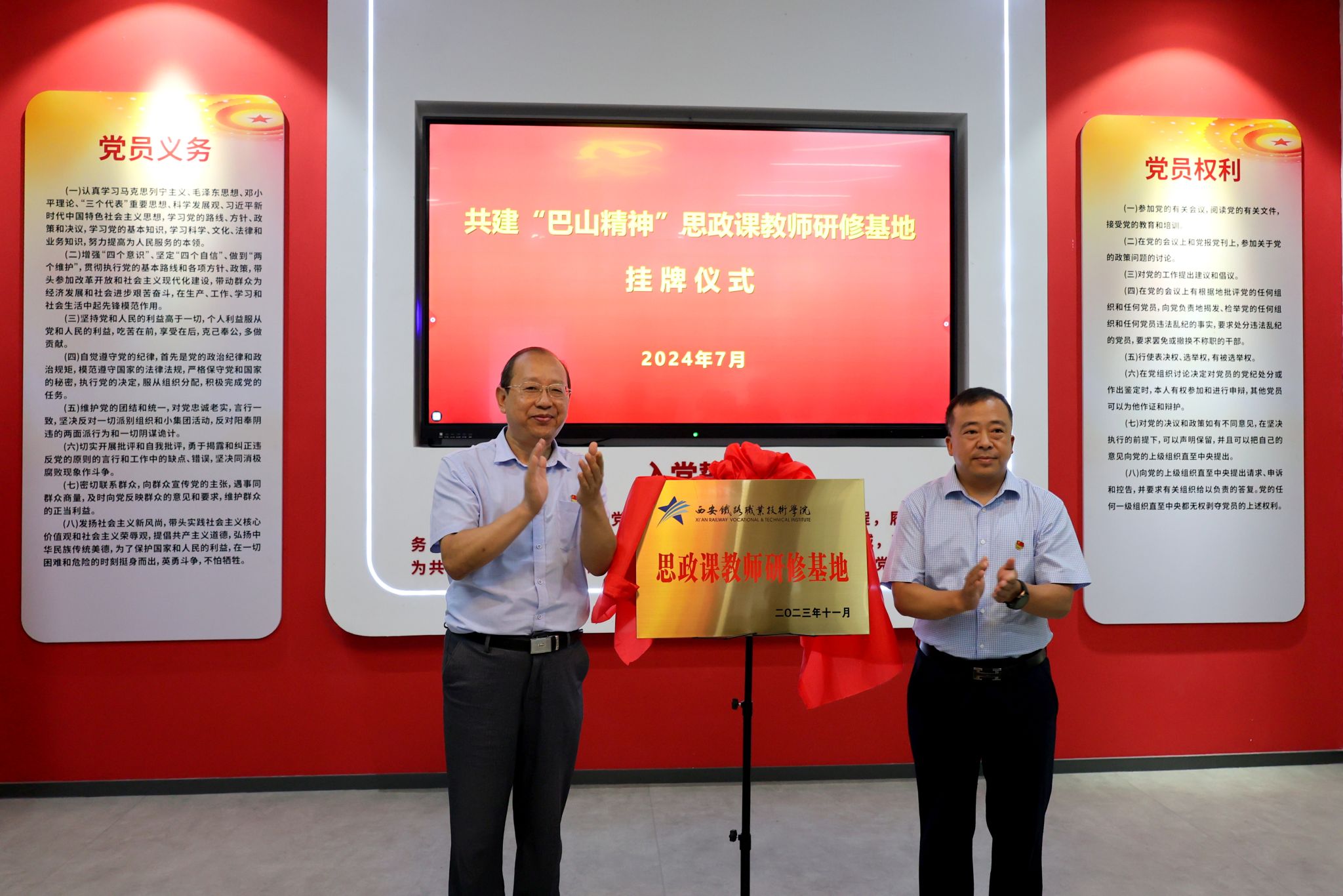 活动伊始,安康工务段党委书记柳青和学院党委副书记任治军共同为“巴山精神”思政课教师研修基地揭牌。