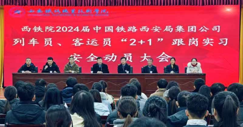 座谈会后,校企双方为2024届西安局集团公司54名列车员、12名客运员举行了跟岗实习安全动员大会。