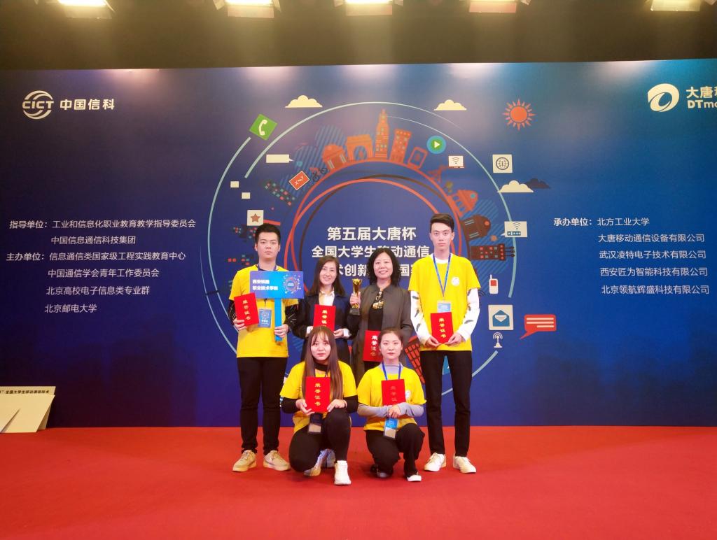 第五届“大唐杯”全国大学生移动通信技术创新大赛国赛于10月12日至15日在北方工业大学举行。必赢官网电子信息学院派出王鑫裕、景瑞佳和李丹、于志恒参加全国总决赛,最终全部荣获高职组一等奖,其中王鑫裕、景瑞佳团队荣获高职组一等奖第一名(特等奖)。杨国荣、李艳芳荣获优秀指导教师称号,我院荣获最佳组织奖。同时,杨国荣、李艳芳参加高职组教师个人赛,分别荣获一等奖、二等奖。
