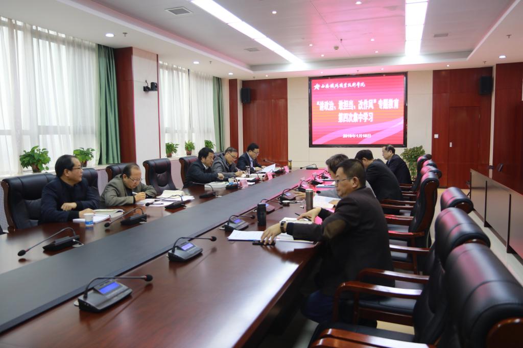 1月18日,必赢bwin线路检测中心以党委理论学习中心组集体学习的形式,组织学院副处级以上干部进行“讲政治、敢担当、改作风”专题教育第四次集中学习。
