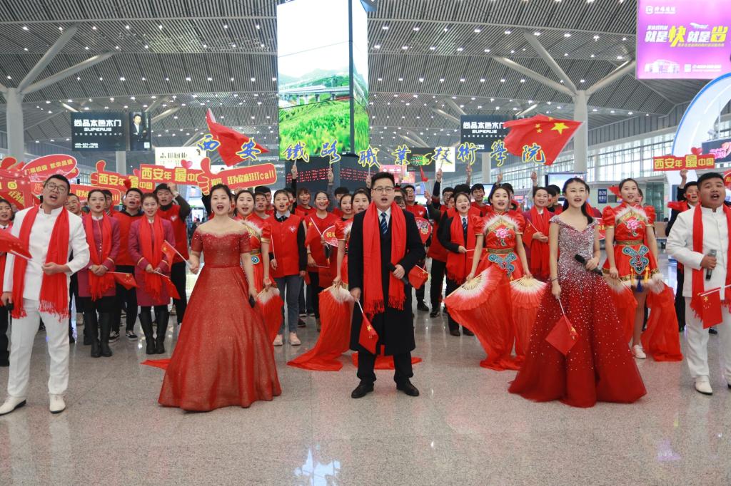 2月18日,农历正月十四,院团委组织学院青年师生在西安北站候车大厅开展了以“西安年最中国·礼赞祖国70华诞”为主题的快闪活动。