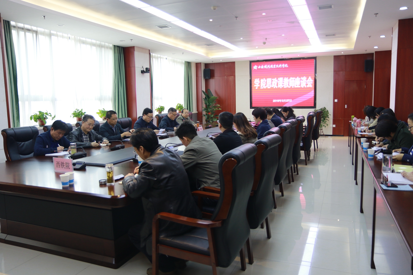 为深入贯彻落实习近平总书记在学校思政课教师座谈会上的重要讲话精神。3月27日,必赢bwin线路检测中心召开学院思政课教师座谈会。学院党委书记施利民出席会议并讲话,会议由党委副书记邓耀斌主持。学院相关处室负责人及思政教科部全体教师参加会议。