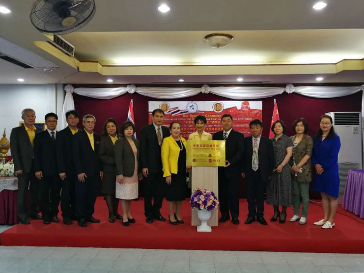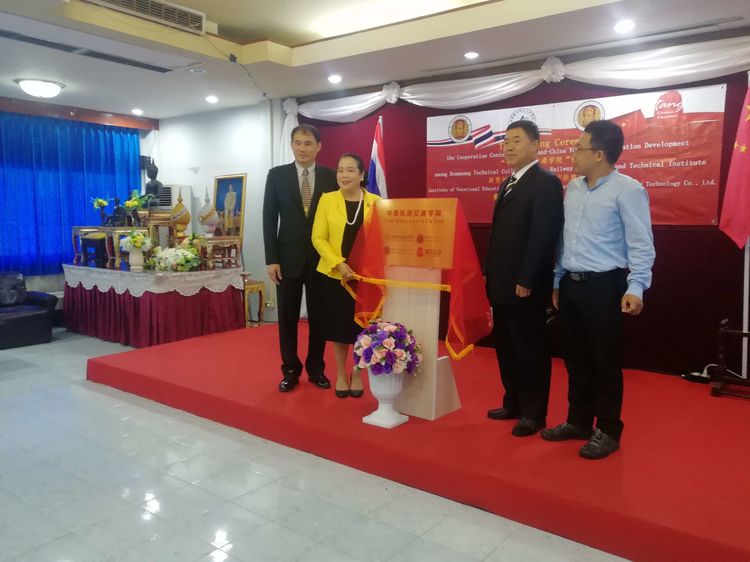 4月26日上午,必赢bwin线路检测中心与曼谷职教中心联合成立的中泰轨道交通学院在曼谷廊曼技术学院揭牌。副院长安学武、曼谷职教中心波帮松女士、唐风教育集团和廊曼技术学院负责人共同主持了揭牌仪式,此举标志着学院国际合作办学又一重要进展。