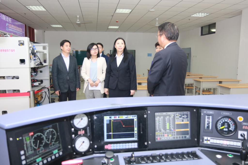 巴克特古洛娃·卡纳伊姆大使首先来到了西铁院牵引动力学院,现场考察了牵引动力学院实训中心的HXD3型机车模拟驾驶实训室、动车组驾驶暨牵引传动实训中心和城轨车辆驾驶实训中心等实训基地。