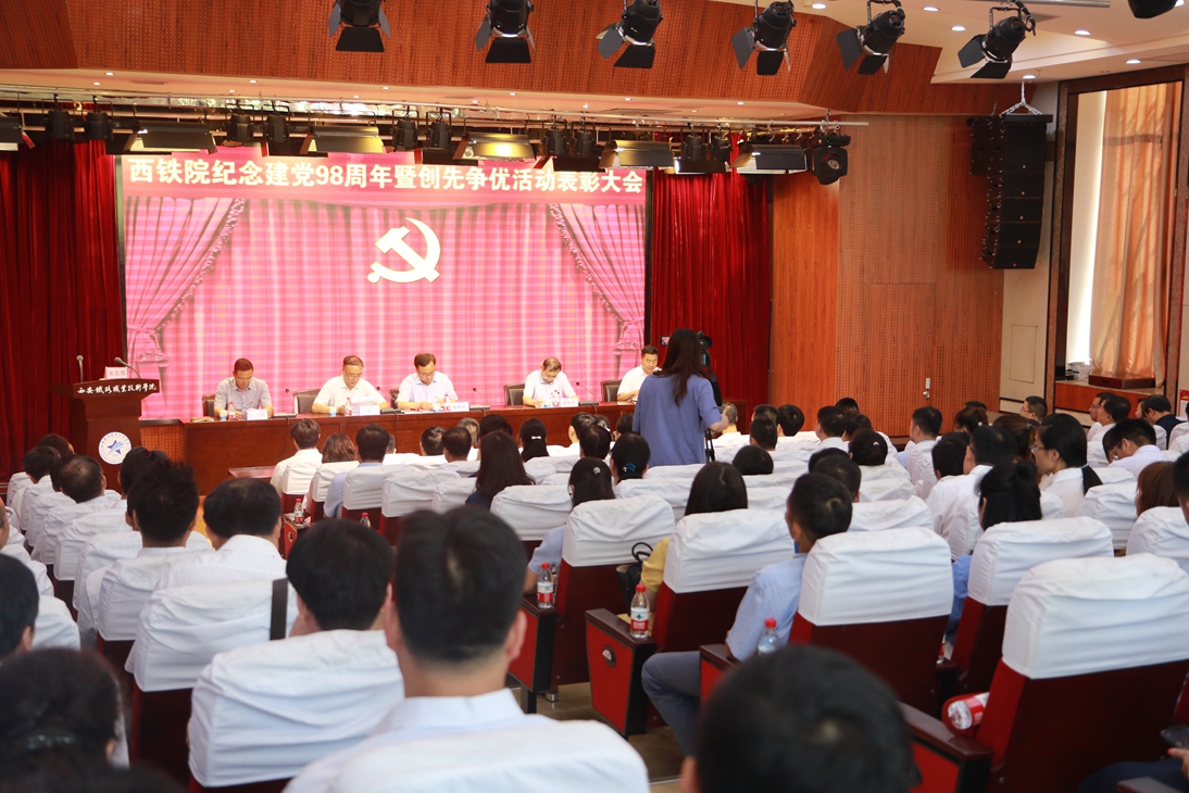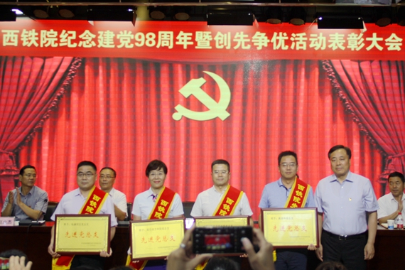 表彰大会由院长田和平同志主持。党委副书记邓耀斌同志宣读了表彰决定。大会对一年来做出优异成绩的临潼校区党总支、牵引动力学院党总支、电子信息学院党总支和离退休党总支等4个先进党总支,教研学工党总支教务党支部等10个先进党支部,教研学工党总支学生工作党支部就业团委党小组等6个先进党小组,祁若溪等64名优秀共产党员和谭松等12名优秀党务工作者进行了表彰。党员代表李宏菱同志代表受表彰的先进集体和个人发言。在庄严的气氛中,全体共产党员重温了入党誓词,再一次深刻感受到党员的责任、使命。