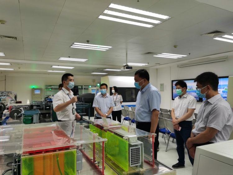 武汉高速铁路职业技能训练段作为中国铁路总公司唯一的高铁全工种培训机构,培训设备代表着我国高铁最新技术。施利民、赵春平先后参观了机车模拟驾驶、信号控制、供电等室内实训室及室外实训场,并与高铁训练段党委书记、段长吴思强,副段长姚俊鹏、胡伟等段领导进行了交流座谈。双方就如何在教学资源、培训课程开发、师资培训等方面的合作达成初步意向,要求相关业务部门尽快推进落实。