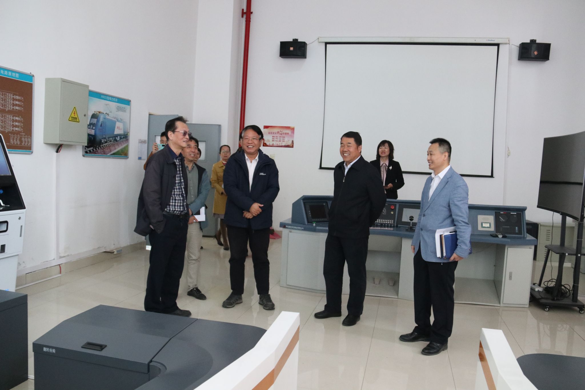 会后,安学武陪同郝宏志一行参观了轨道交通专业综合实训中心、电气工程学院、机电工程学院、牵引动力学院专业实训室,深入了解必赢官网实训室建设、学生实作等情况。