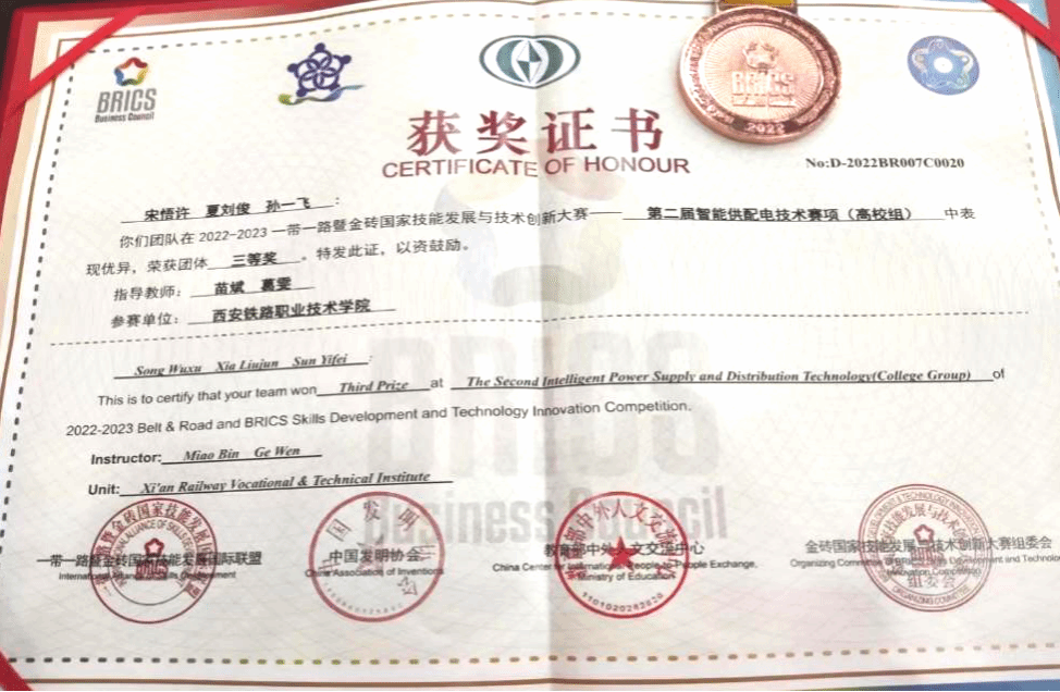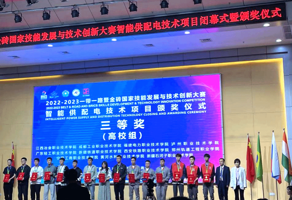 3月30日至4月2日,“2022-2023‘一带一路’暨金砖国家技能发展与技术创新大赛——智能供配电技术项目”决赛在广西水利水电职业技术学院落下帷幕。必赢官网夏刘俊、宋悟许、孙一飞三位同学组成的参赛团队首次参加该赛项,荣获三等奖。