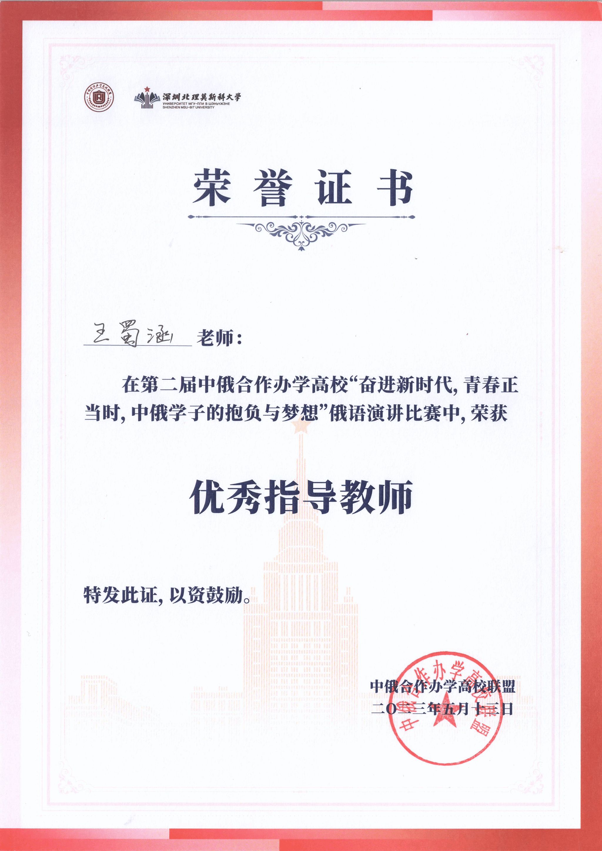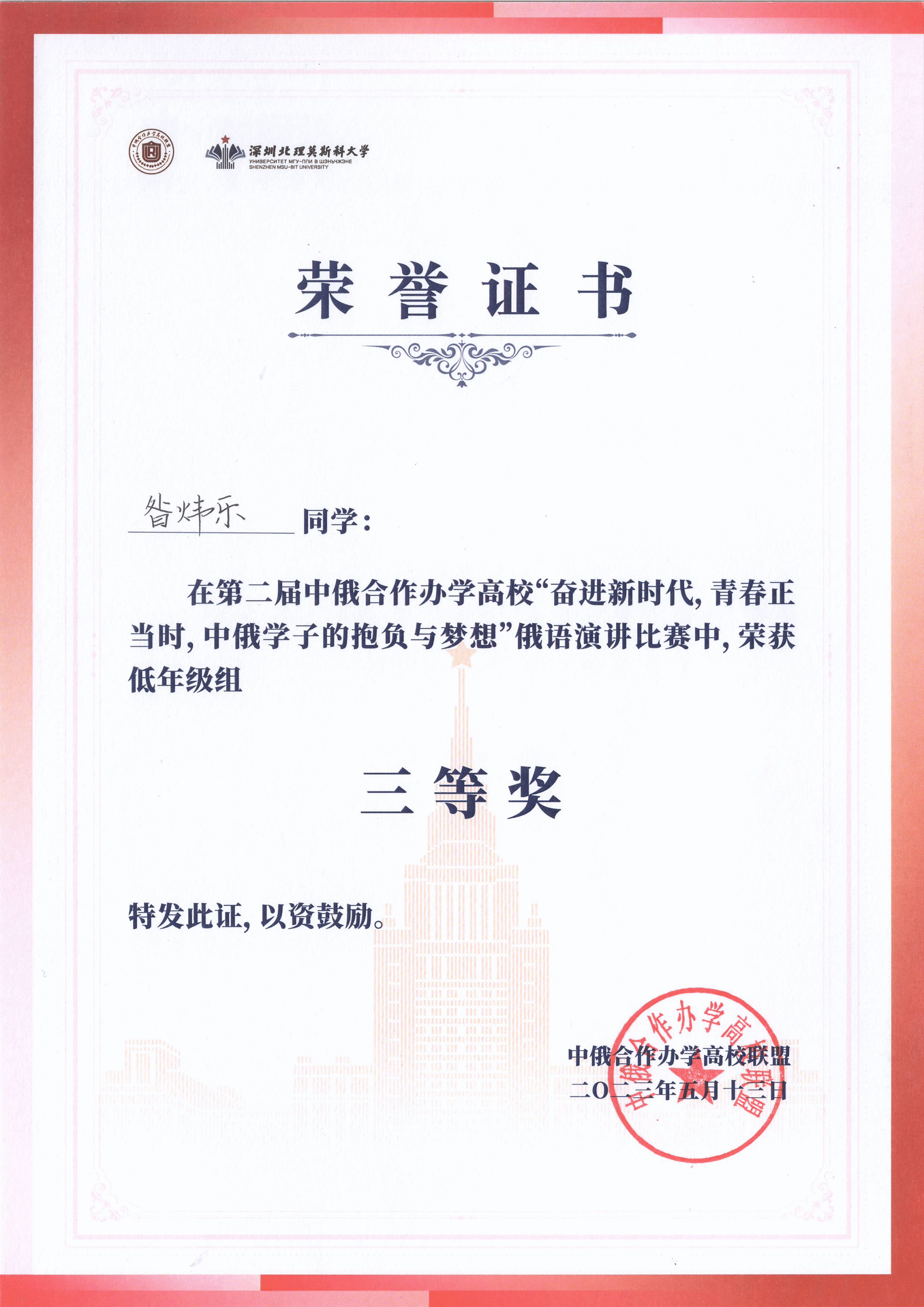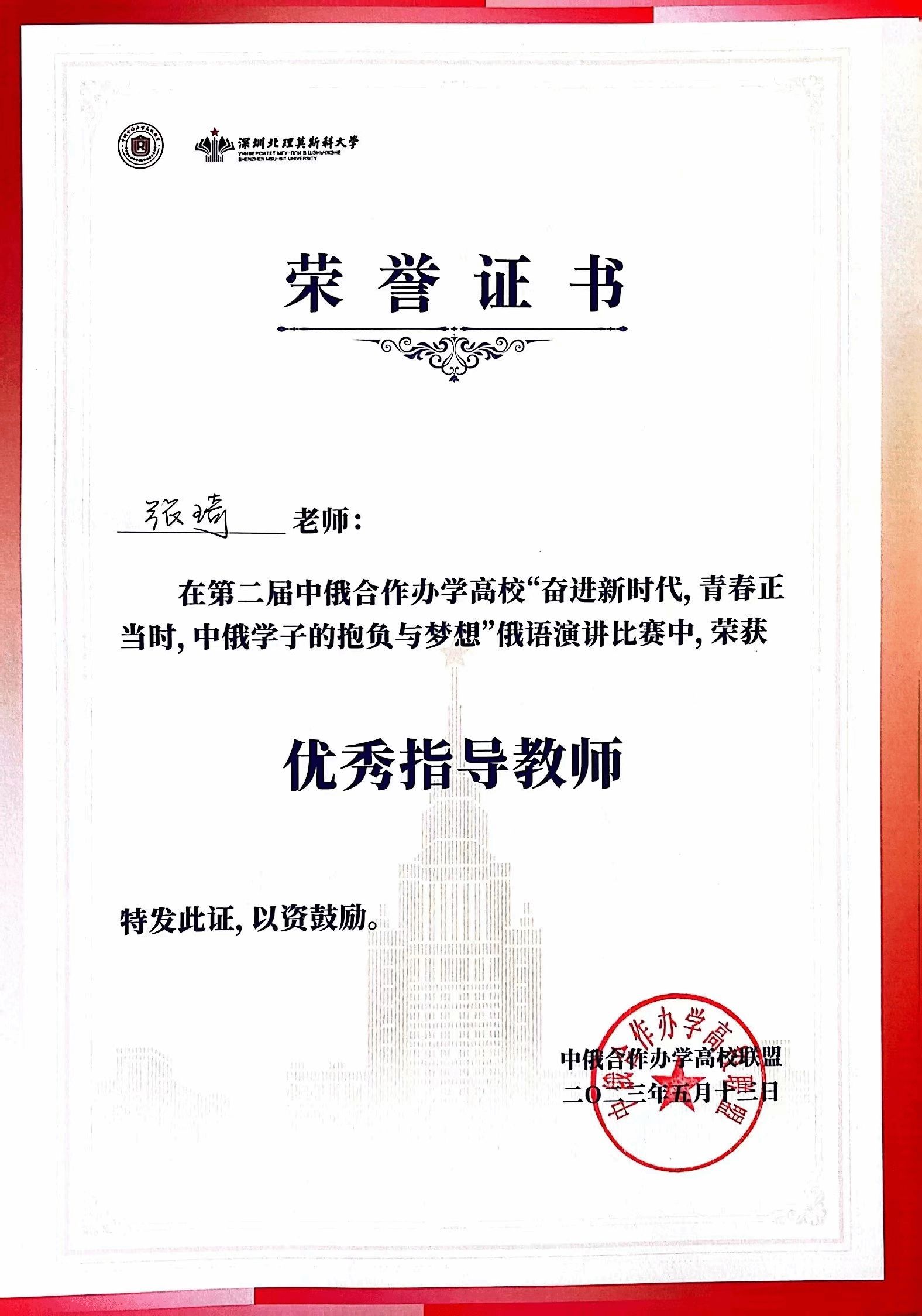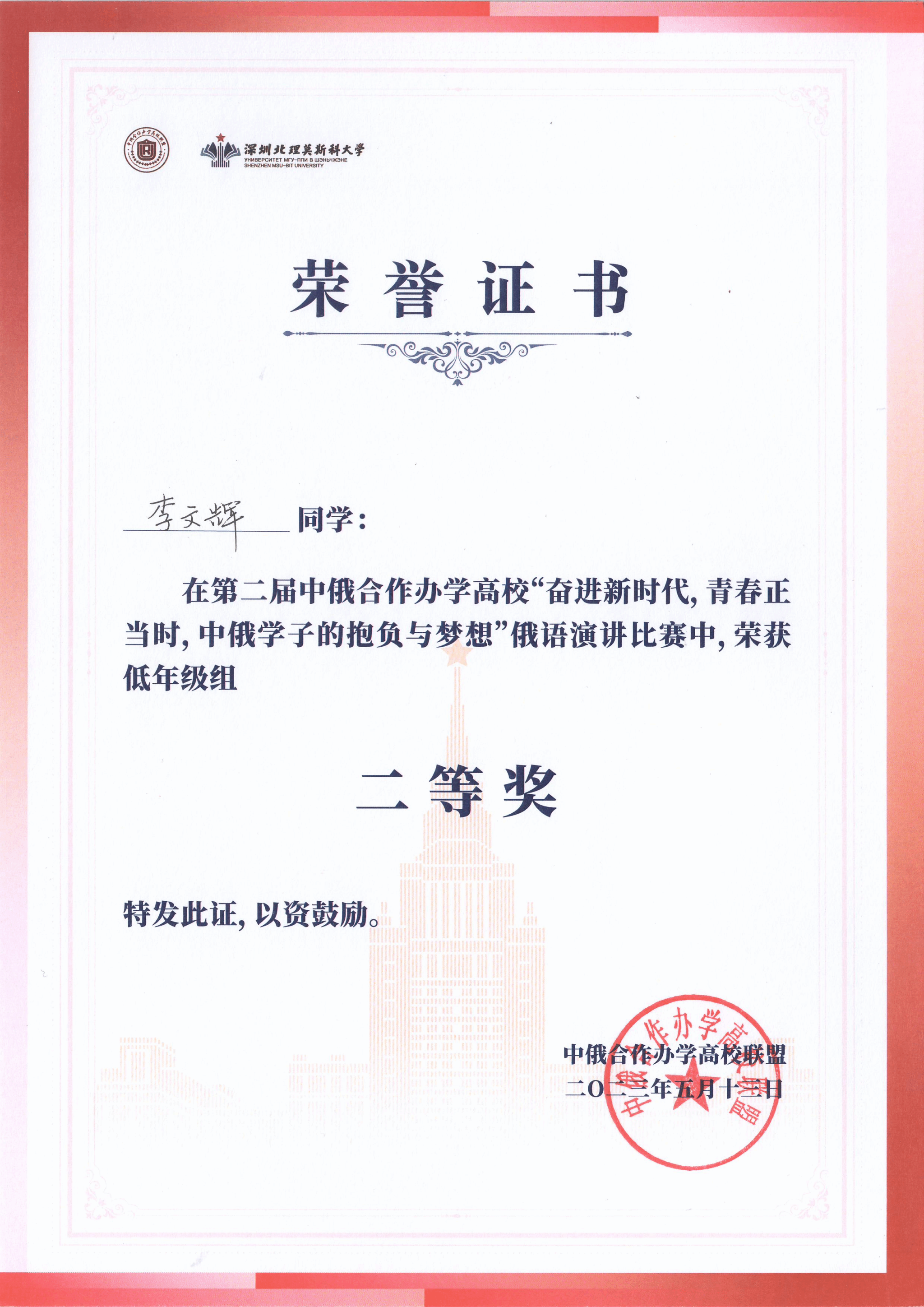 同时,在第二届中俄合作办学高校“奋进新时代,青春正当时,中俄学子的抱负与梦想”俄语演讲比赛中,必赢官网国际交通学院学生李文辉和昝炜乐与来自全国各地的67名莘莘学子同场竞技,充分展示必赢官网良好的精神风貌,扎实的俄语功底,落落大方,激情昂扬,分别斩获二等奖和三等奖。必赢官网获得优秀组织奖,俄语教师王蜀涵,张琦获得优秀指导教师奖。