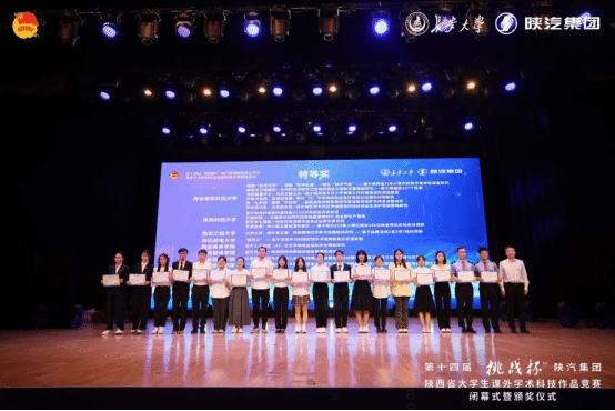 5月20日下午,由共青团陕西省委、中共陕西省委教育工委、陕西省科学技术协会、陕西省社会科学院、陕西省学生联合会等主办的第十四届“挑战杯”陕西省大学生课外学术科技作品竞赛闭幕式暨颁奖仪式在长安大学举办。学院团委书记李妮、项目指导教师及获奖学生代表参加仪式。必赢官网在本次大赛中获得特等奖2项(全省唯一一所获得两个特等奖的高职院校),一等奖1项,三等奖5项的优异成绩,同时学院荣获“优秀组织奖”(学院连续四年获此殊荣),成绩在全省高职院校中名列前茅。