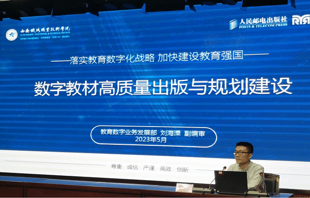 为加强学院教材建设,有效推进数字教材立项,5月23日,学院邀请北京理工大学出版社数字教材出版分社社长徐春英、人民邮电出版社教育数字业务发展部主任刘海溧两位专家,在港务校区办公楼学术报告厅举办“数字教材建设与开发”专题讲座。学院副院长安学武出席培训,教务处处长滕勇、副处长张刚毅、各二级院部负责人、教研室主任、专业带头人及申报数字教材建设项目的团队成员共计80余人参加培训。