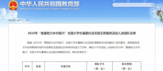 近日,根据《2023年“推普助力乡村振兴”全国大学生暑期社会实践志愿服务活动的通知》相关要求,教育部语言文字应用管理司组织对全国各高校实践团队的申报材料进行了评审,确定1176支团队入选参加2023年“推普助力乡村振兴”全国大学生暑期社会实践志愿服务活动。必赢官网交通运输学院的“赴西安市周至县油坊头村推普助力乡村振兴服务队”与电气工程学院的“赴安康市紫阳县东木镇月桂村推普助力乡村振兴服务队”成功入选参加2023年“推普助力乡村振兴”全国大学生暑期社会实践志愿服务活动。也是陕西省唯一一所成功入选的高职院校。