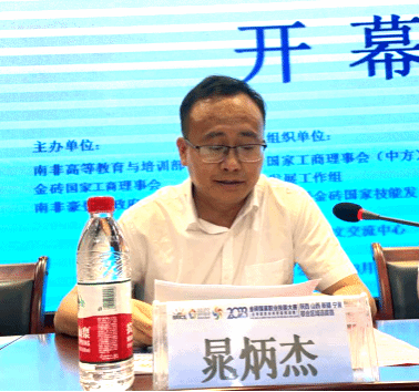 晁炳杰代表技术支持单位发言,他表示,作为本次大赛的技术支持单位,西安亚成智能科技有限公司将全力做好各项技术保障工作,保证大赛的公平公正,让参赛选手赛出风格、赛出水平、赛出成绩,为推动岗课赛证协同育人的目标提供支持。
