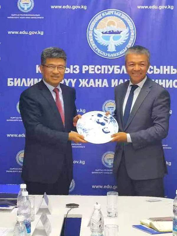 8月23日,学院院长赵春平一行六人来到吉尔吉斯斯坦共和国教育科学部访问,同副部长热苏力·阿巴滋别克,高等、中等专业和研究生教育司司长纳伊马尼巴耶·阿扎马提·巴各达托维奇,初等职业教育司司长马梅罗瓦·古力努拉·杰克申巴耶芙娜,法律支持司司长伊布拉吉莫夫·别克图热·阿萨特别科维奇,国际合作与投资司首席专家木力扎别克夫·努尔季各提·肯杰别科维奇等进行会谈。
