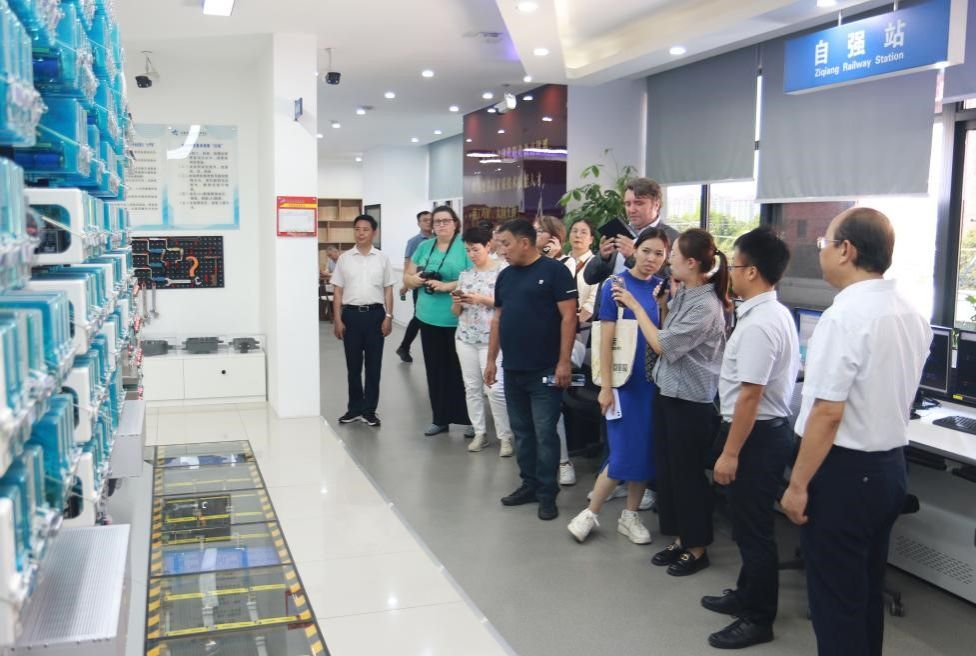 代表团一行参观了学院轨道交通综合实训中心、牵引动力综合演练场、动车组模拟驾驶实训室、磁悬浮列车实训室等实训场所。多位记者亲自体验了复兴号动车组模拟驾驶,对我国高铁发展和学院在轨道交通领域的办学实力给予高度评价。