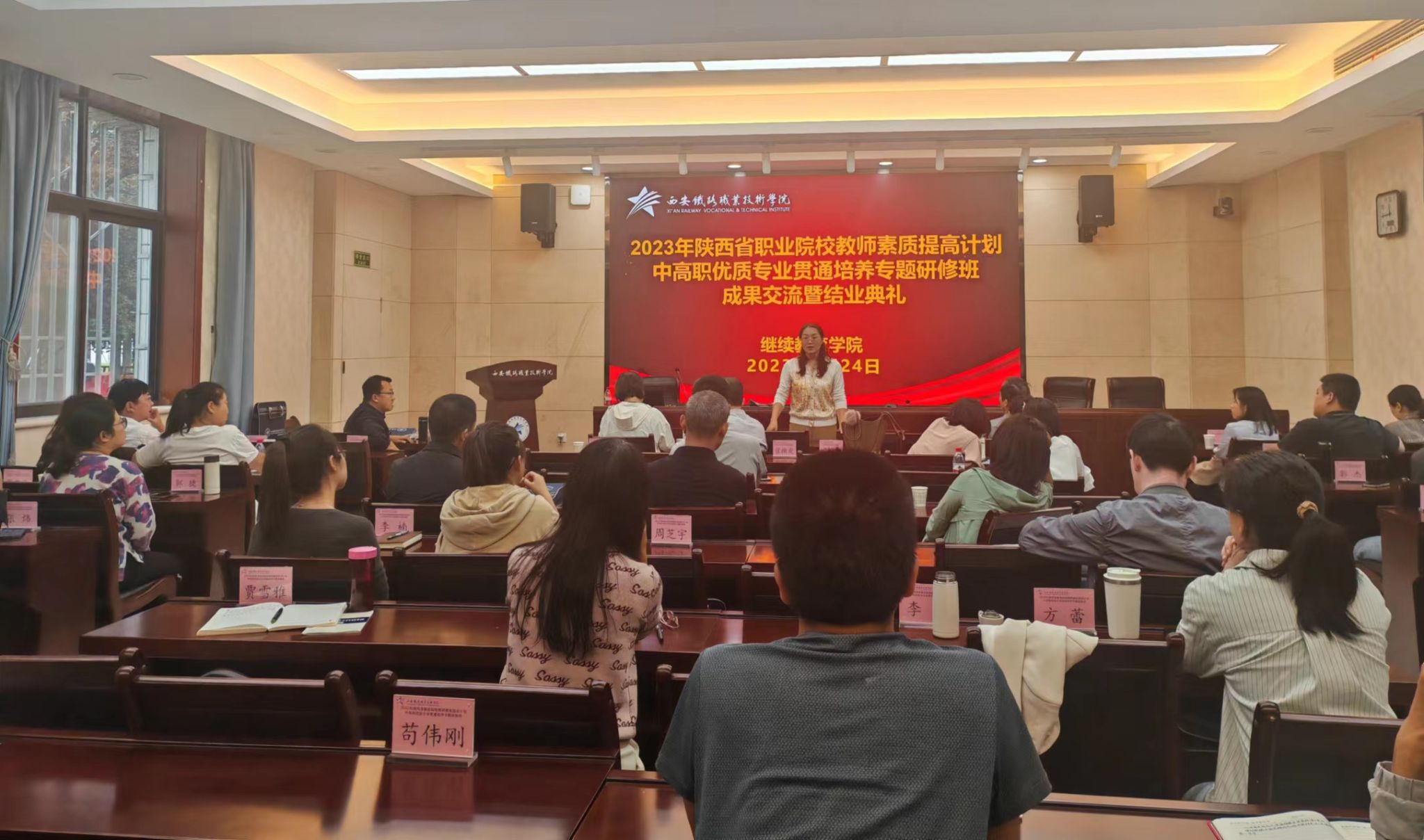 9月18日至24日,2023年度陕西省中高职优质专业贯通培养专题研修班在必赢官网自强校区举行,48名来自省内中高职院校的教学管理人员、专业带头人、骨干教师参加了为期一周紧张有序的培训学习。