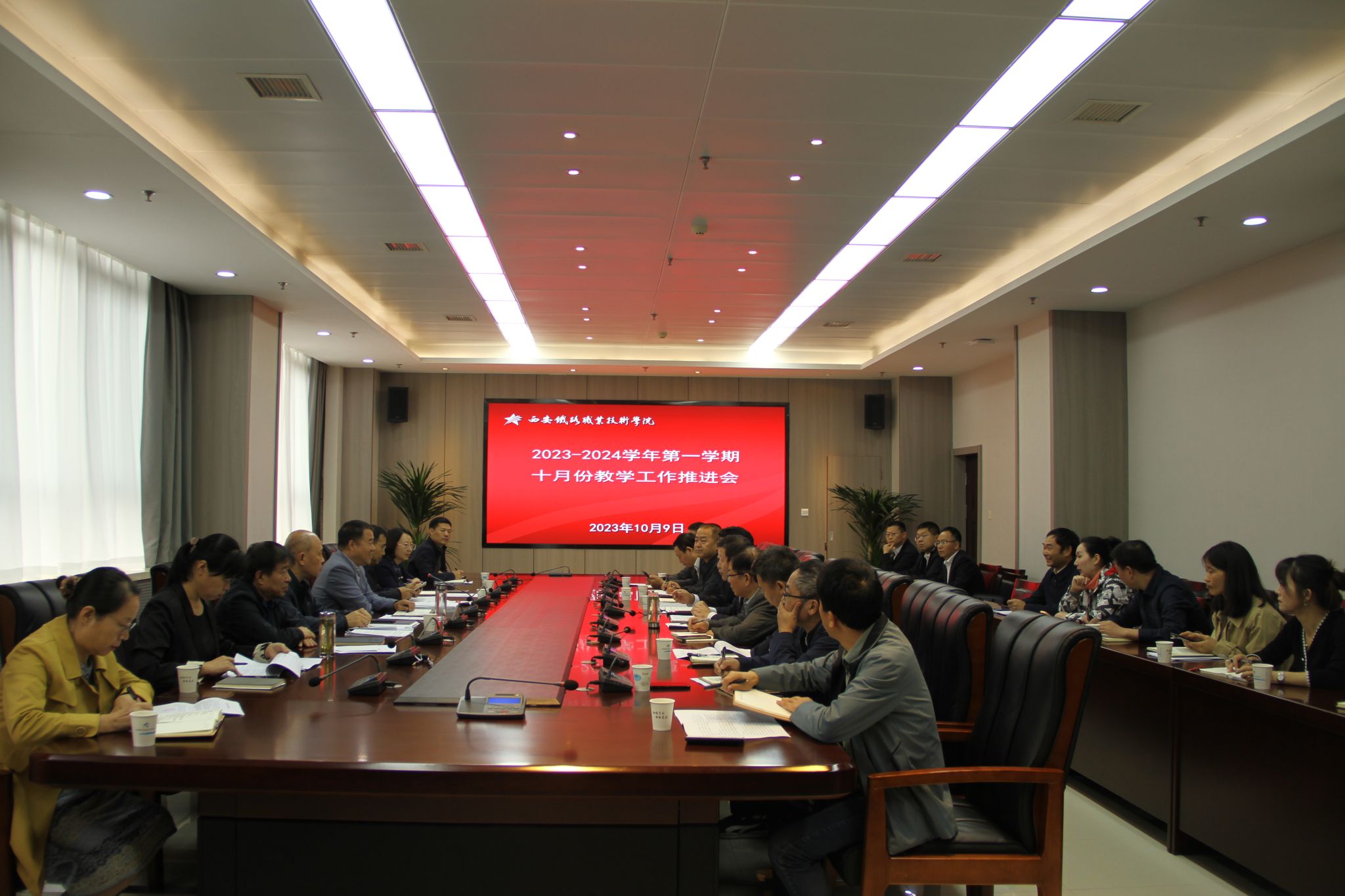 10月9日,学院副院长安学武主持召开10月份教学工作推进会。教务处、发展规划处、教科研处、现代教育技术中心、就业指导中心、图书馆等职能处室以及各二级院部负责人、教学副院长及院(部)办主任参加本次会议。