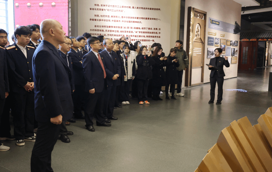 仪式结束后,学院师生代表共同参观陕西铁路陈列馆,该馆集陈列、收藏、展示、科普、教育等多种功能于一体,以“沧桑·艰难起步”“新生·稳步前行”“变革·飞速发展”“腾飞·驶向复兴”四个主展区全景展示了陕西铁路百年发展历程和西铁儿女砥砺前行的奋斗足迹。