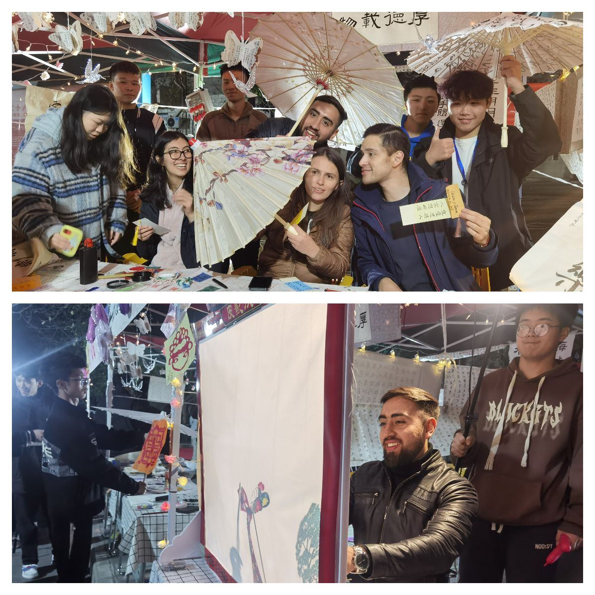 丝路使者,交融中西;诗书弹唱,以文化人。来自国际交通学院的留学生们也参与到集市活动中,他们来到皮影戏社团的摊位,在南美流行音乐的曲调下,操纵影人在白色幕布后起舞,中国优秀传统艺术与哥伦比亚音乐在此刻交织在一起。在西铁院集市上,东西方文化和谐相处而又各具特色,“和而不同,美美与共”。