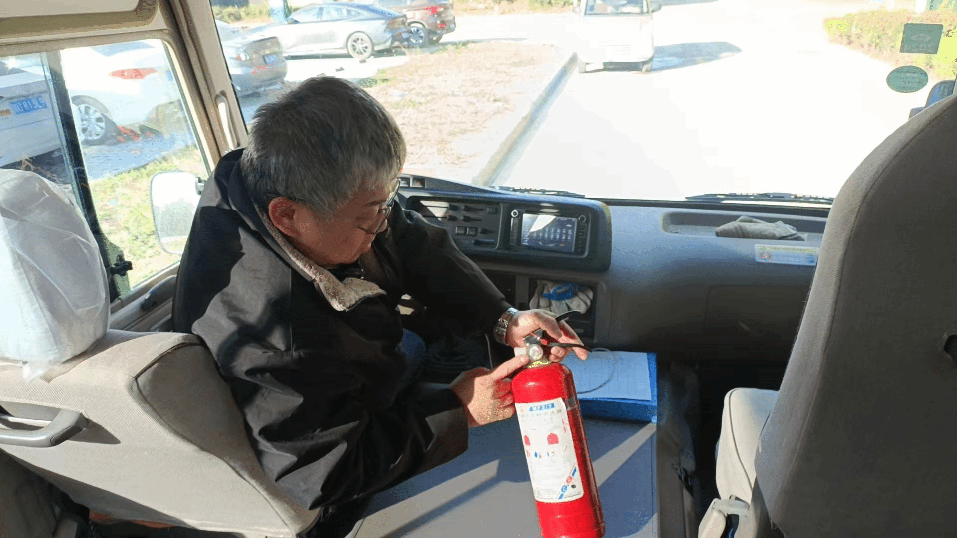综合办车队队长带领驾驶员对所有车辆进行了安全全面检查,一是对车辆灭火器的安全使用,逃生窗、安全锤操作方法等进行了排查。二是对车辆的轮胎、刹车灯、转向灯、雨刷器等严格按要求进行了查看。通过排查车辆整体状况良好,未发现安全隐患。