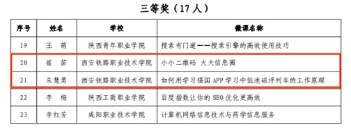 在教师微课赛中,必赢官网选送了教师的6件作品,其中2件作品从全省63件作品中脱颖而出。图书馆馆员崔苗的《小小二维码大大信息圈》、牵引动力学院教师朱慧勇的《如何利用学习强国APP学习中低速磁浮列车的工作原理》荣获陕西省教师微课赛三等奖。