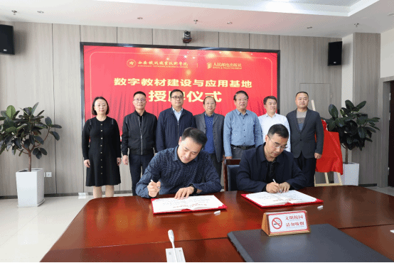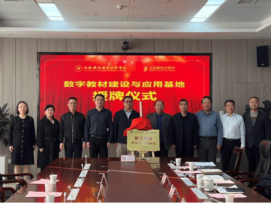 人民邮电出版社有限公司副总经理曾斌、教育出版中心营销部主任陶友亭、陕西大区经理上官雷锋、教育出版中心数字业务发展部高级策划编辑李伟、陕西省数字教材出版基地总顾问于建军和陕西省数字教材出版基地经理牛磊一行共同出席了本次签约授牌仪式。