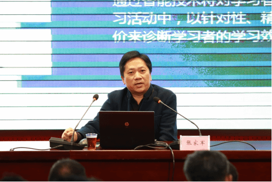 研讨会上,教育部教学评估专家、西南大学教育学一流学科建设办公室主任、重庆市职业教育教学指导委员会委员张家军教授做题为《智慧教材的内涵、功能模型建构及实现路径》主旨报告。