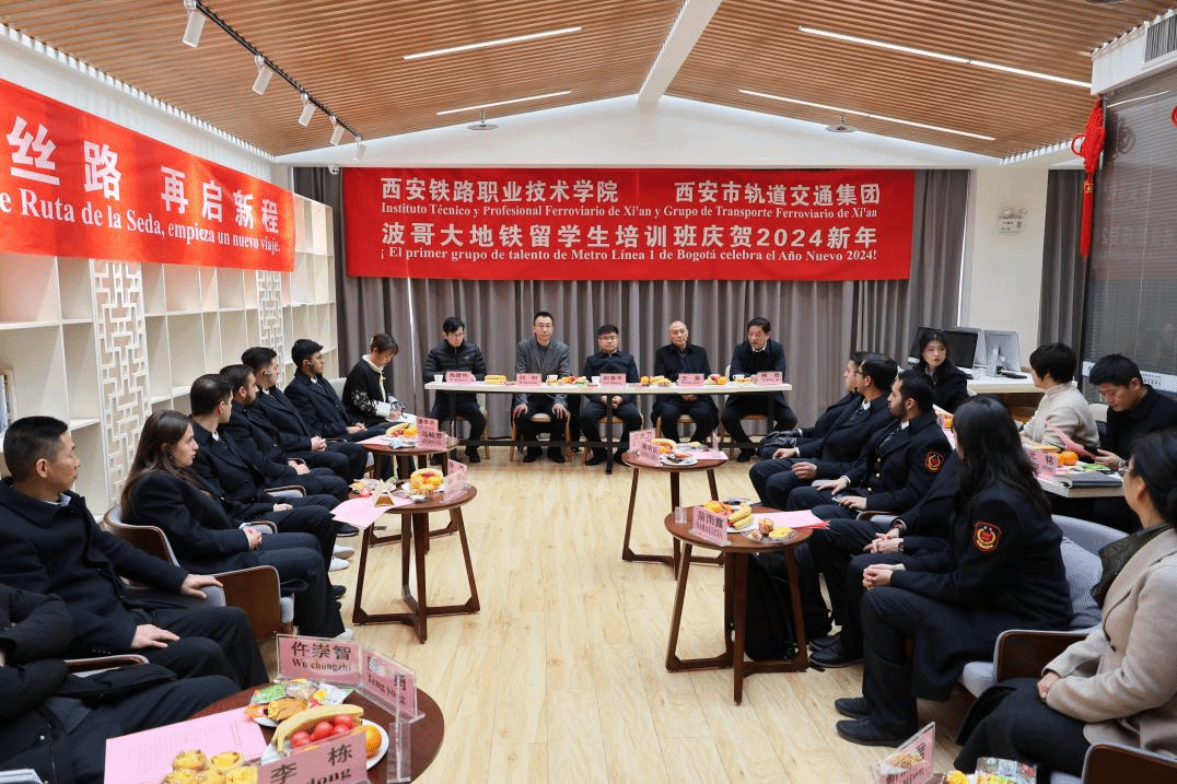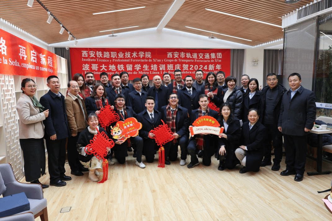 12月28日,必赢bwin线路检测中心与西安市轨道交通集团有限公司携哥伦比亚波哥大地铁留学生培训班,开展了“十年丝路 再启新程”庆贺2024新年活动,活动在必赢官网国际交流中心举行。西安市轨道交通集团运营分公司党委书记王鉴、副总经理禹建伟,学院院长赵春平、党委副书记、纪委书记邓轩以及校企双方相关部门负责人、10名哥伦比亚留学生等参加了迎新年座谈会,活动由学院副院长熊奇主持。