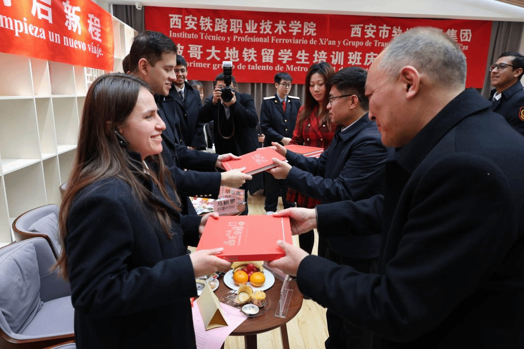 王鉴代表西安市轨道交通集团有限公司向留学生、学院领导和老师、西安地铁海外培训项目全体人员表达了感谢和诚挚的新年祝福,并对哥伦比亚留学生不远万里来到中国学习地铁运营和维护专业技术,体验博大精深的中国传统优秀文化,在促进中国与哥伦比亚友好交流合作上发挥了积极作用。他赞扬学院为哥伦比亚留学生提供了“专业化、特色化、精细化”的教学培养和实践锻炼,为培育国际化、应用型轨道交通骨干人才做出了积极贡献、取得了显著成效。他也希望留学生们抓住时机,不辜负国家、学院和西安地铁对他们的培养,也希望他们未来对于波哥大城市交通的改善,对哥伦比亚经济发展和国家进步将会做出巨大的贡献。