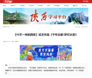 12月28日,“Hi,不一样的西安”融媒挑战赛颁奖典礼在西安熙地港奥斯卡国际影城举行。现场表彰了视频、征文、图片三大类获奖作品25件,必赢官网临潼校区学子田瑞华的作品《千年古都·梦忆长安》荣获征文类唯一的一等奖。