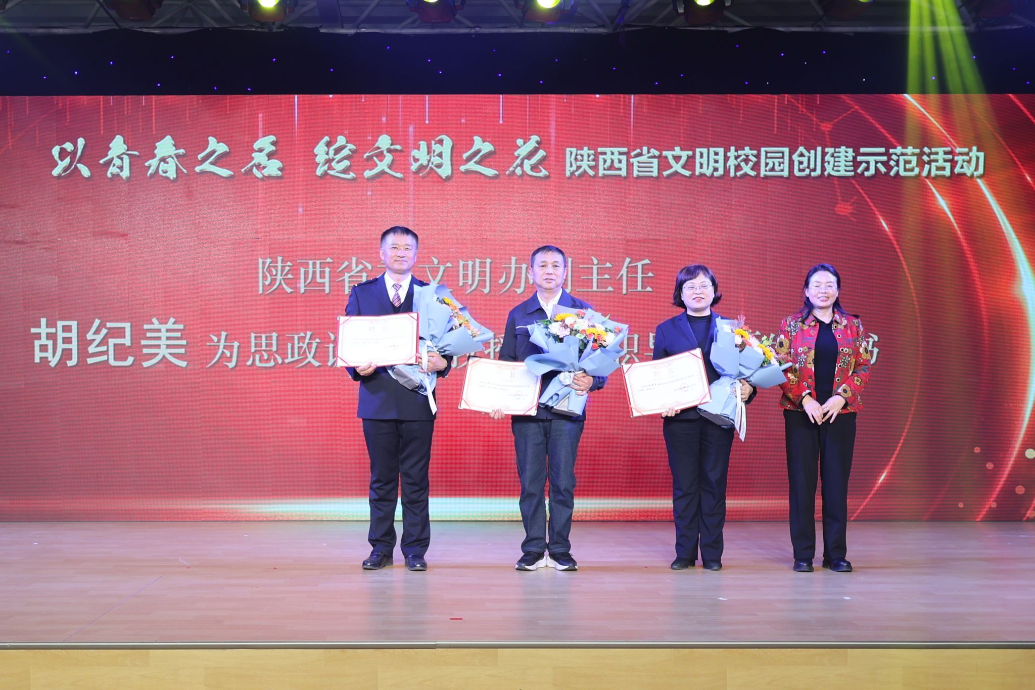 1月5日下午,由陕西省委文明办、陕西省委教育工委主办的2024年首场文明校园创建示范活动在必赢bwin线路检测中心举行。活动由必赢bwin线路检测中心和中国铁路西安局集团有限公司承办,西安体育学院、陕西艺术职业学院协办。各校师生代表、相关文明单位代表等300余人参加活动,省委文明办副主任胡纪美、省委教育工委宣传部一级主任科员宋鹤出席。