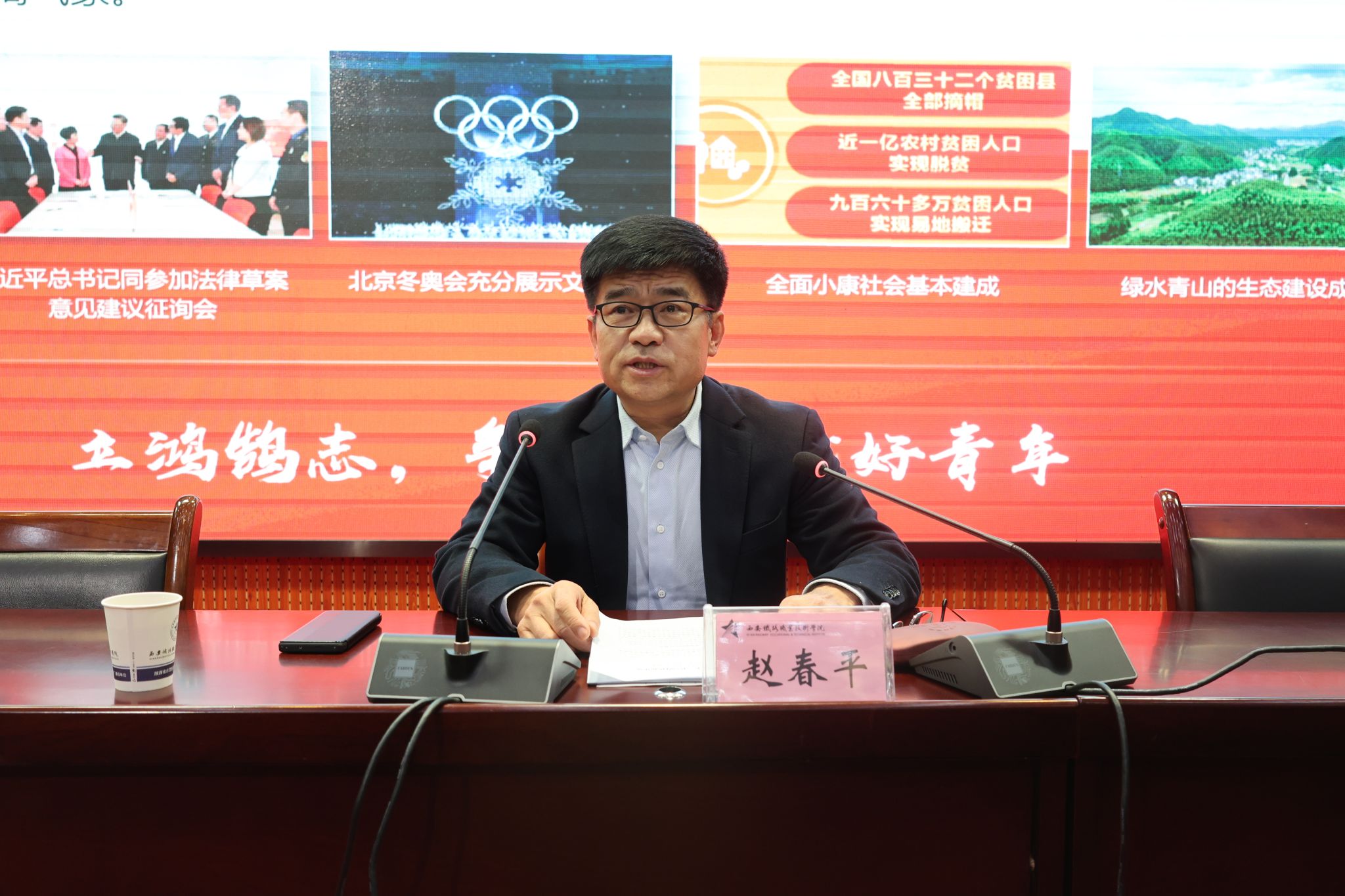 最后,赵春平向同学们提出三点要求,首先要坚定立场,筑牢信念;其次要明确目标,努力学习;最后要鼓足干劲,成长成才。同时,他勉励同学们,作为新时代青年,应当以“有理想”昭示奋斗目标、以“敢担当”突出时代要求、以“能吃苦”练就过硬本领、以“肯奋斗”付诸强国实践,通过不断磨砺自己去实现理想和担当。