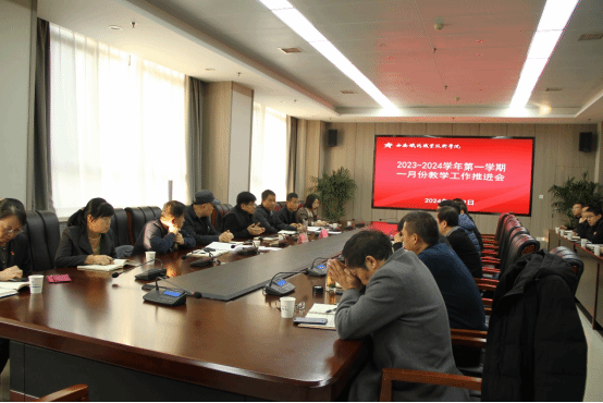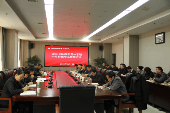 1月9日,学院副院长安学武主持召开2024年1月份教学工作推进会,学院院长赵春平出席会议。教务处、发展规划处、现代教育技术中心、就业指导中心、图书馆等职能处室以及各二级院部负责人、教学副院长及院(部)办主任参加本次会议。