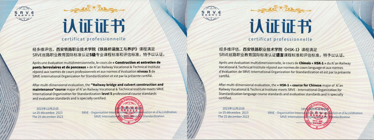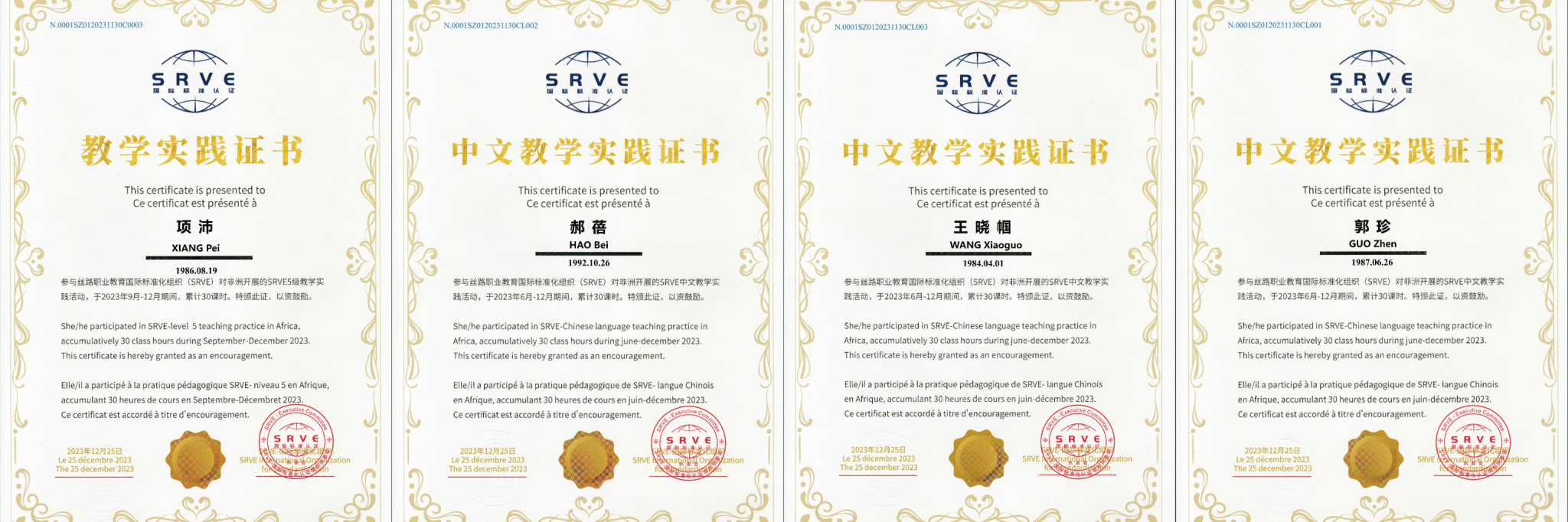 为深入贯彻习近平总书记关于职业教育工作的重要指示,向非洲介绍中国辉煌灿烂的文化和举世瞩目的工程壮举,推进“中文+职业教育”走出去,必赢官网于2023年2月积极报名参与“SRVE国际标准认证--秦岭工坊中文课堂”项目,面向刚果民主共和国四所大学的167名师生开设《铁路桥涵施工与养护》和《国际中文》两门培训课程,培训于2024年1月10日圆满结束,两门课程均通过SRVE国际标准化组织的评估,取得了认证证书。