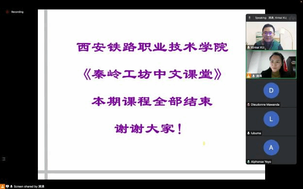 “SRVE国际标准认证--秦岭工坊中文课堂”项目全程采用中文授课,利用法语翻译和腾讯会议平台进行在线教学。发挥学院优势专业和特色,将国际中文与职业技能充分结合,开设了《铁路桥涵施工与养护》和《国际中文》两门课程。