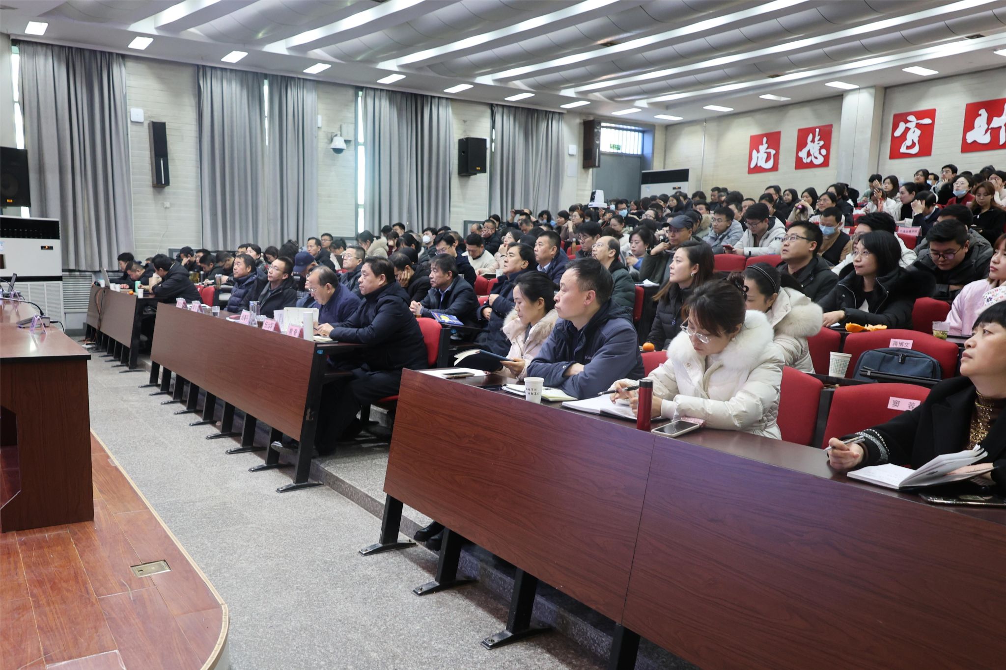 报告会采取主会场、分会场同步直播形式,学院领导班子全体成员、处科级干部及全体教职工参加。主会场、各分会场秩序井然,教职工们认真聆听,达到了应有的学习效果。