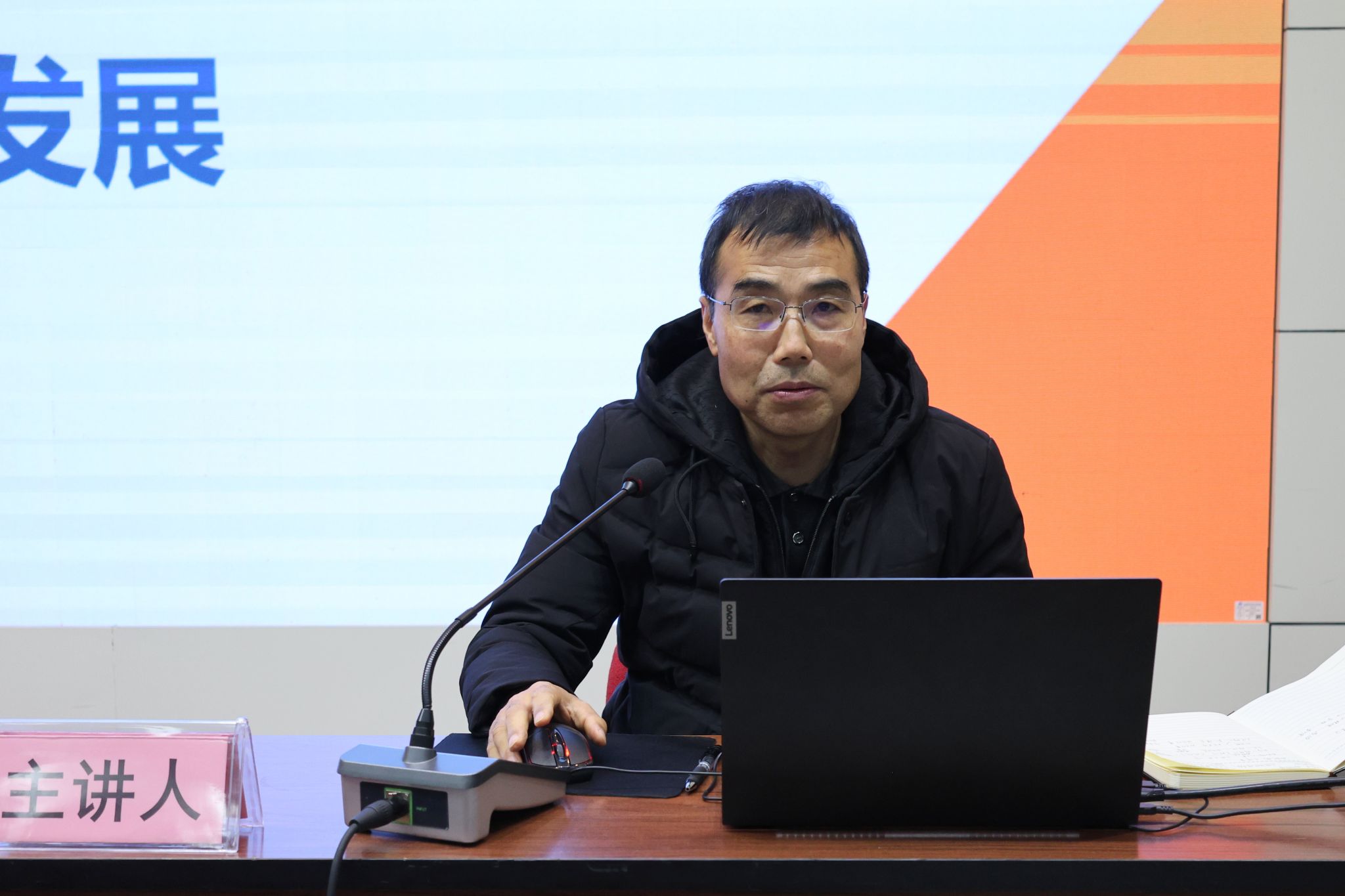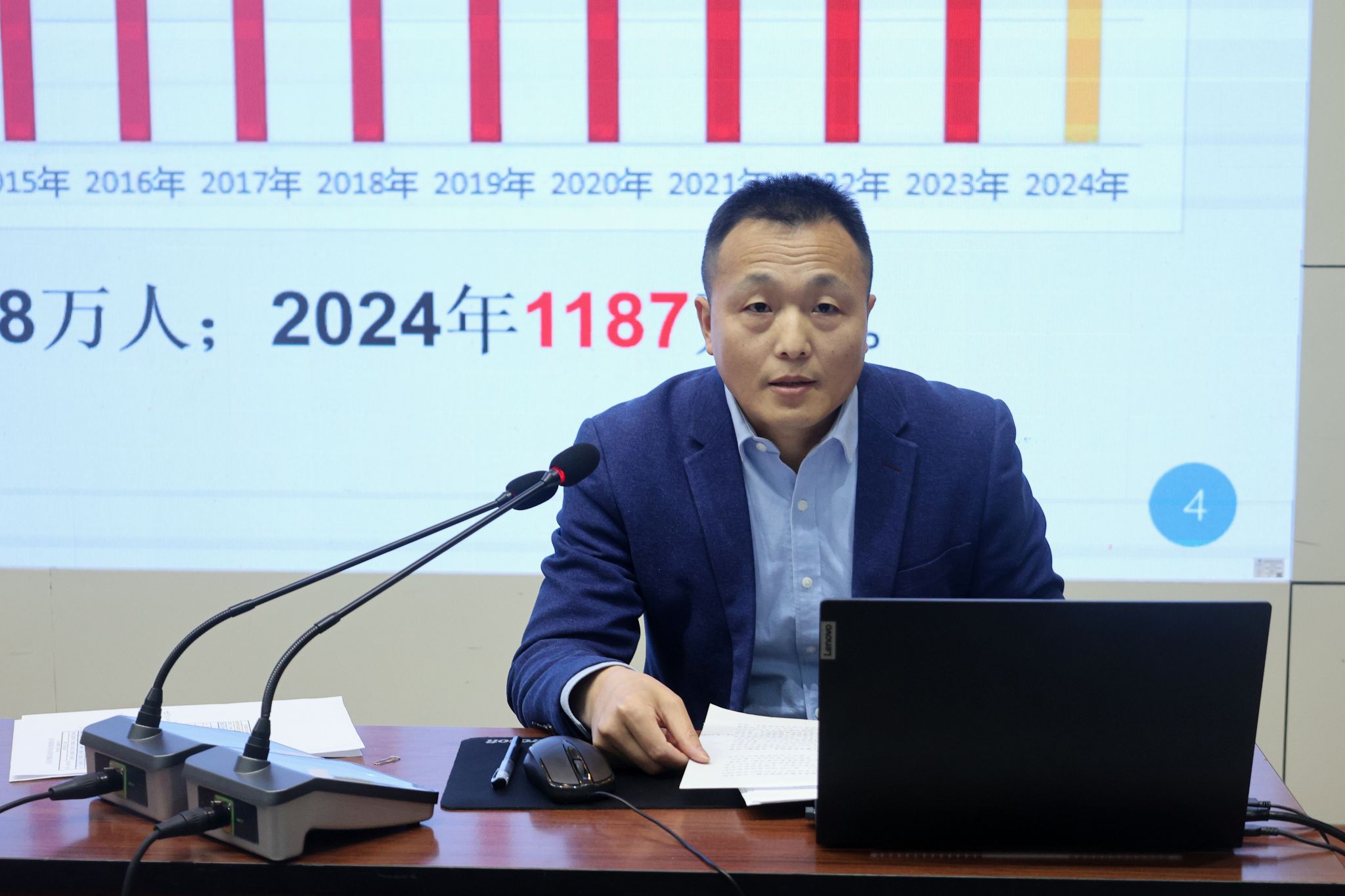 就业指导中心(校企合作处)主任张治平作了题为《加强就业指导工作,助力学院“双高建设”高质量发展》的专题报告