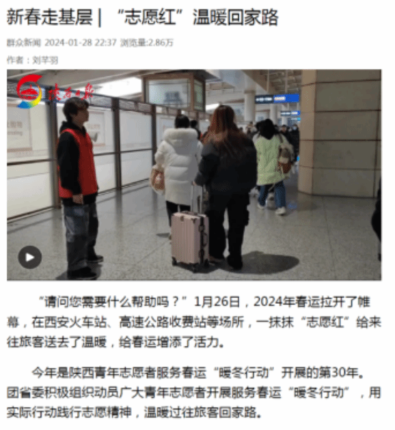在这个寒假的30天里,学院397名志愿者们服务于西安铁路局12个火车站点,累计服务时长约31500小时。充分发挥了志愿服务在春运工作中的重要作用,为群众春运出行提供便利的志愿服务。以实际行动展现了西铁院青年志愿者的良好风貌,弘扬了志愿服务精神,温暖了春运返乡返岗人群。接下来,学院将进一步持续动员青年学子积极参与助力铁路客运系列活动,贡献青春力量。