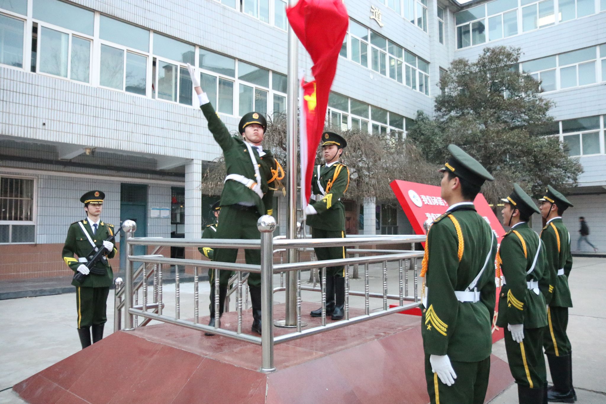 早晨7点,在全场师生的注目礼下,伴随着激昂雄壮的国歌声,鲜艳的五星红旗冉冉升起,全场师生肃立注目,齐齐高唱国歌,表达对伟大祖国的无限热爱和由衷敬意。