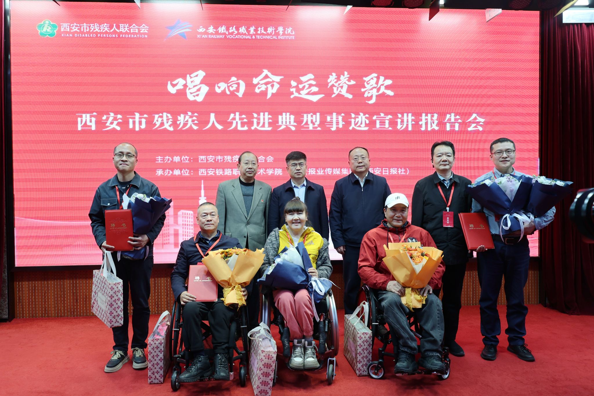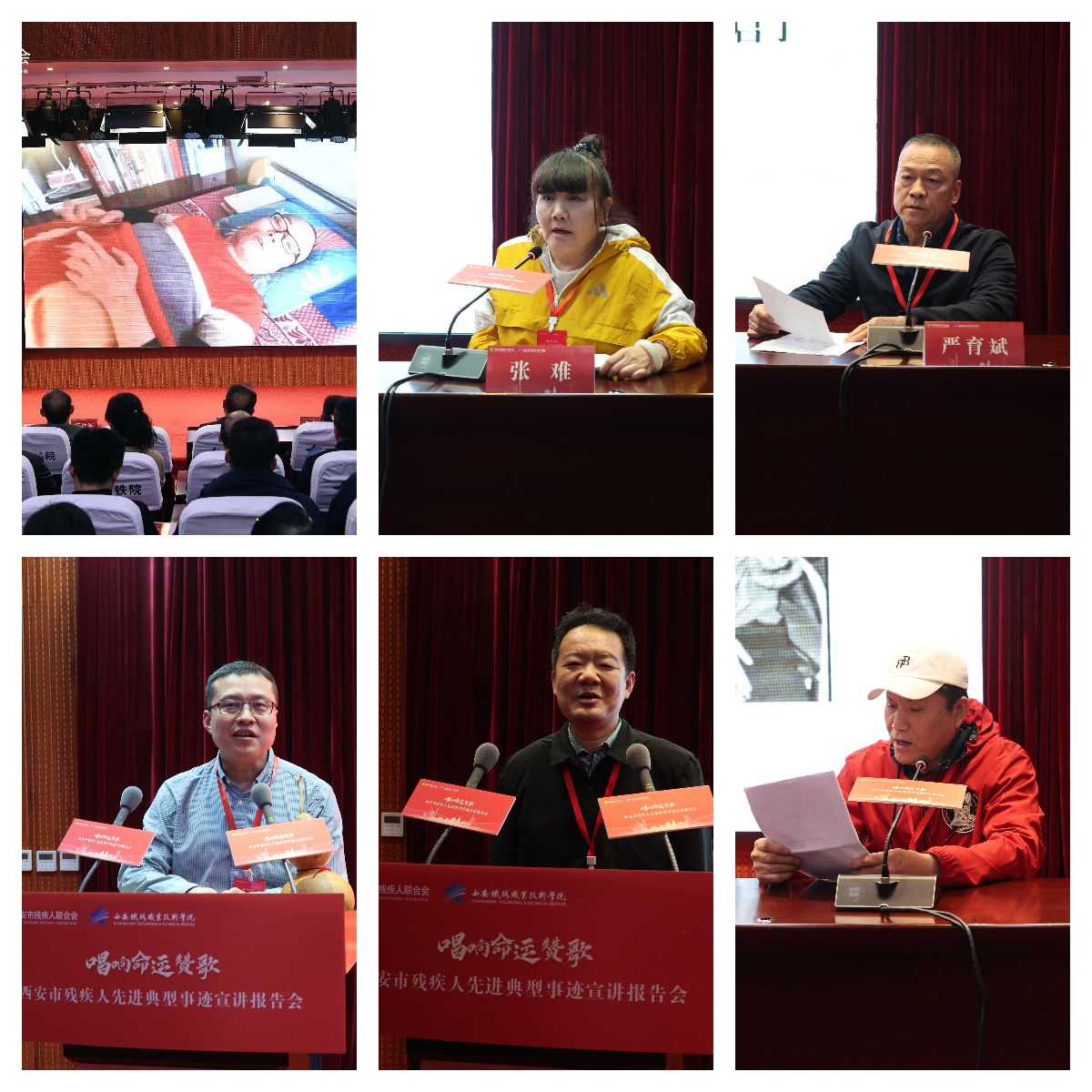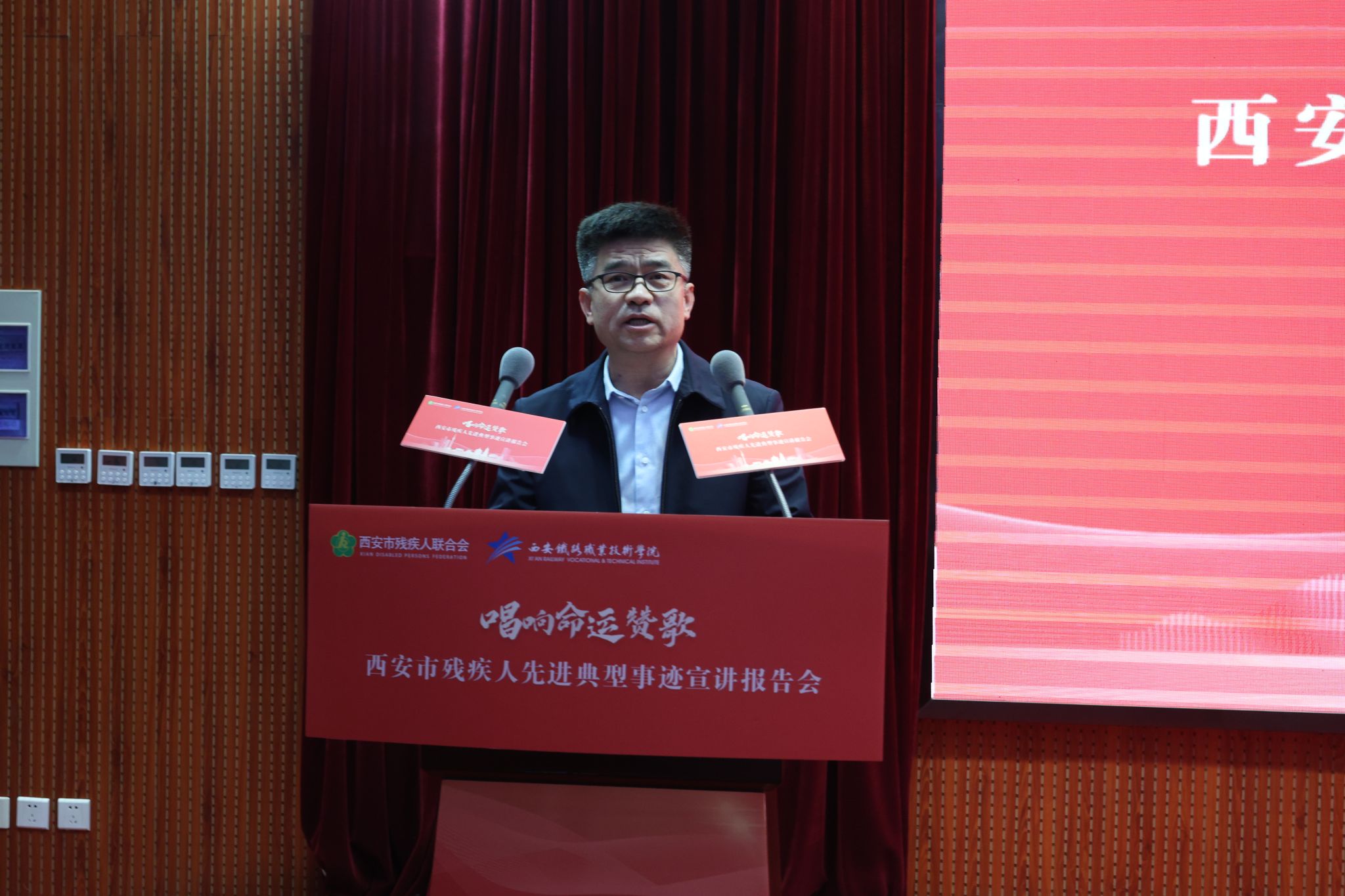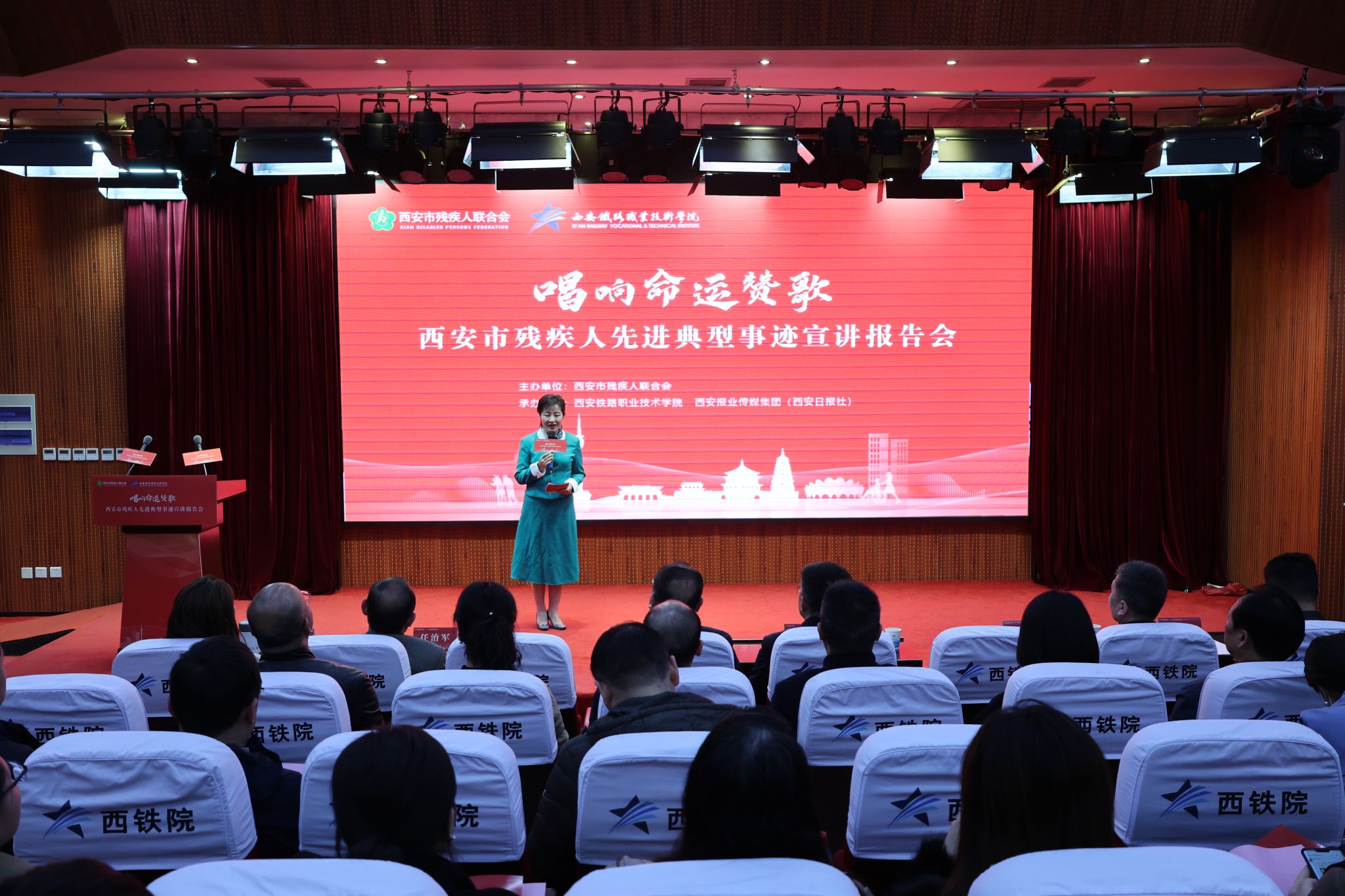 3月13日下午,由西安市残疾人联合会主办,必赢bwin线路检测中心、西安报业传媒集团协办的“唱响命运赞歌”——西安市残疾人先进典型事迹宣讲报告会在必赢官网港务校区学术报告厅举行。市残联副理事长樊颖、院长赵春平、院党委副书记任治军和宣传部、学生工作部、团委负责人,各二级学院党总支书记、教职工代表及150名学生代表在现场参会,宣讲报告会同时进行现场直播,16000余名师生在各校区分会场线上观看。
