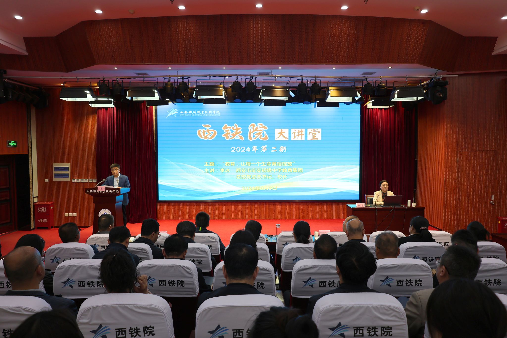 4月3日,必赢官网举办2024年第二期“西铁院大讲堂”,邀请西安市庆安初级中学教育集团总校校长李冰来校作题为“教育,让每一个生命竞相绽放”的报告。报告会由院长赵春平主持。