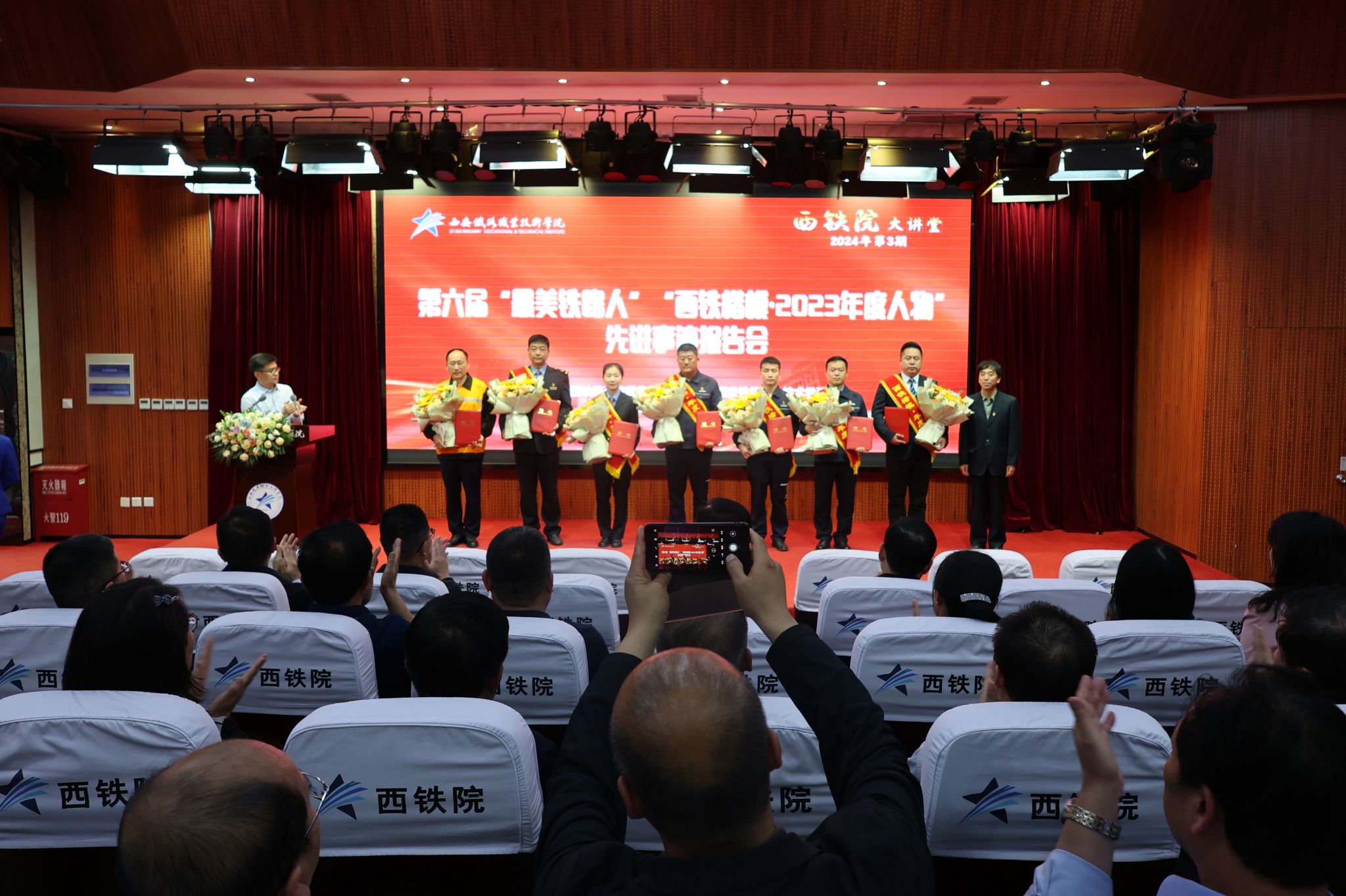 4月10日,必赢官网举办2024年第三期“西铁院大讲堂”,邀请中国铁路西安局集团有限公司的全国第六届“最美铁路人”及“西铁楷模·2023年度人物”代表来校作宣讲报告。党委书记施利民出席并讲话,中国铁路西安局集团有限公司党委宣传部副部长梁波、宣传科科长王浪出席,学院全体处级干部、党校优秀学员代表现场参会,1.7万余名师生通过直播线上收看。报告会由院长赵春平主持。