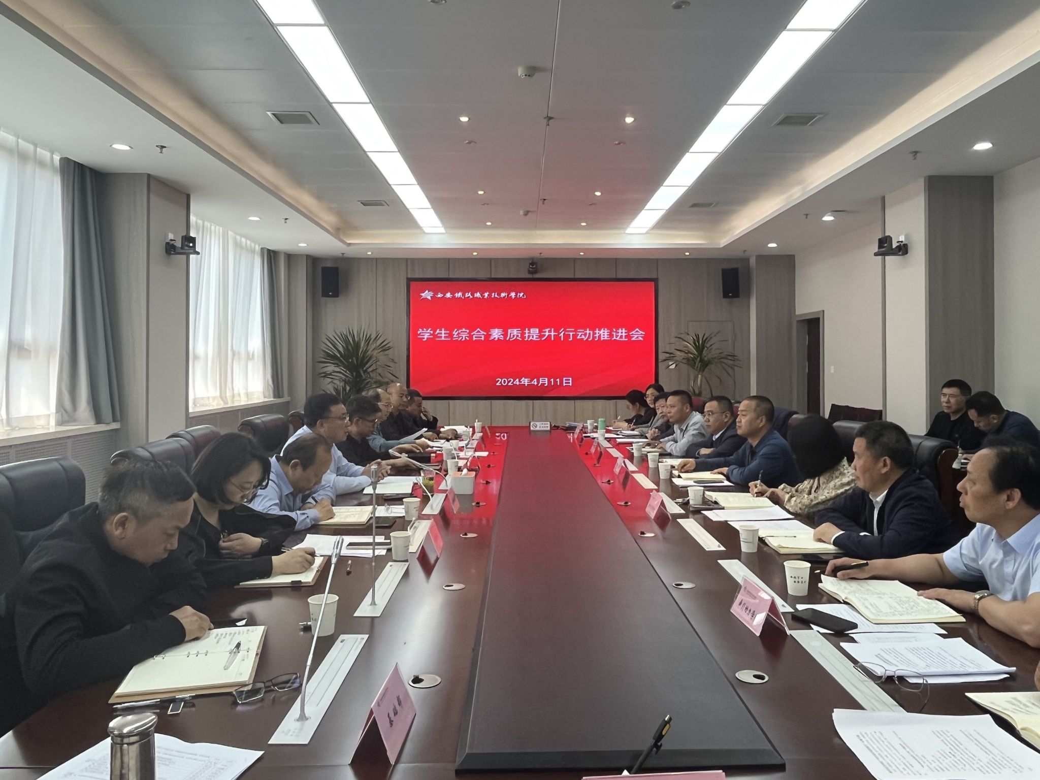 为深入贯彻党的教育方针,落实习近平总书记关于教育的重要讲话精神,培养适应轨道交通行业和区域产业发展需求的高素质技术技能人才,进一步促进学生德智体美劳全面发展,帮助学生内提素质,外塑形象,全面提升学生综合竞争力,4月11日上午,学院在港务校区办公楼六楼第三会议室召开了学生综合素质提升行动推进会。学院党委书记施利民,院长赵春平,党委副书记任治军,教务处、党委学生工作部、团委及各二级学院相关负责人参加会议。会议由党委副书记任治军主持。