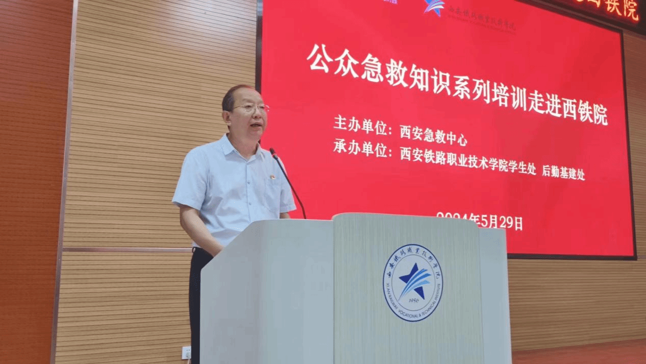 任治军对西安急救中心前来授课的老师们致以诚挚的感谢。他强调,掌握心肺复苏等急救技能对挽救生命至关重要,希望同学们珍惜这次宝贵的学习机会,认真听讲,积极参与,掌握实用的急救技能,在关键时刻能够挺身而出,救助他人。