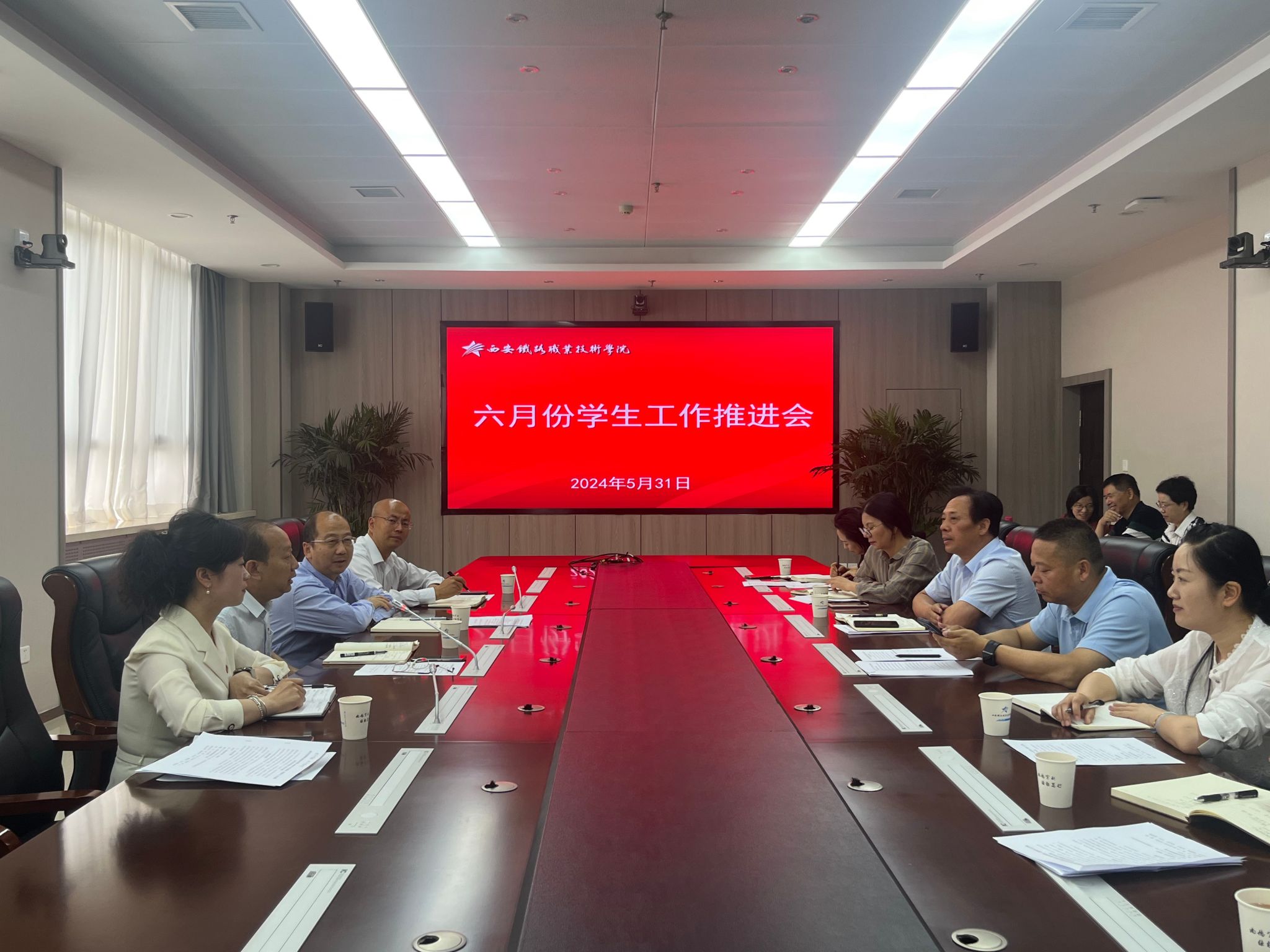 团委书记李妮汇报五月份的主要工作,包括挑战杯参赛团队实践作品分组、参与挑战杯省赛工作培训、开展五四青年节系列主题团日活动,协助做好陕西省职业教育周活动相关工作,举办首届团支部书记能力大赛以及校院两级社团整合等重点工作情况,并有一支学生队伍成功入选2024年全国大学生西柏坡精神志愿宣讲团。团委在六月份将继续关注挑战杯省决赛以及团干部能力大赛,同时举办第二十九届校园科技文化艺术节各项活动决赛,做好暑期助力乡村振兴服务的准备等重点工作。