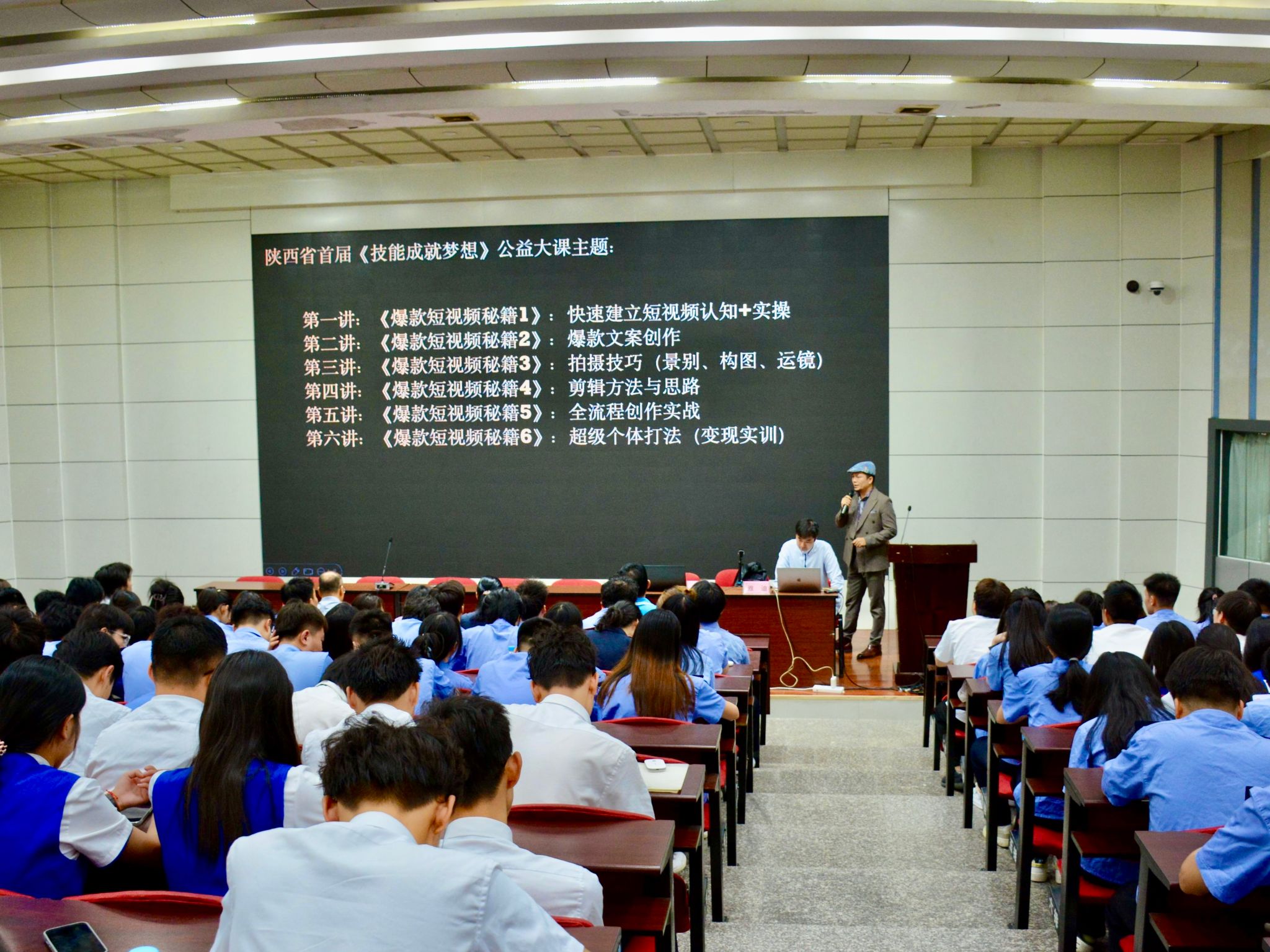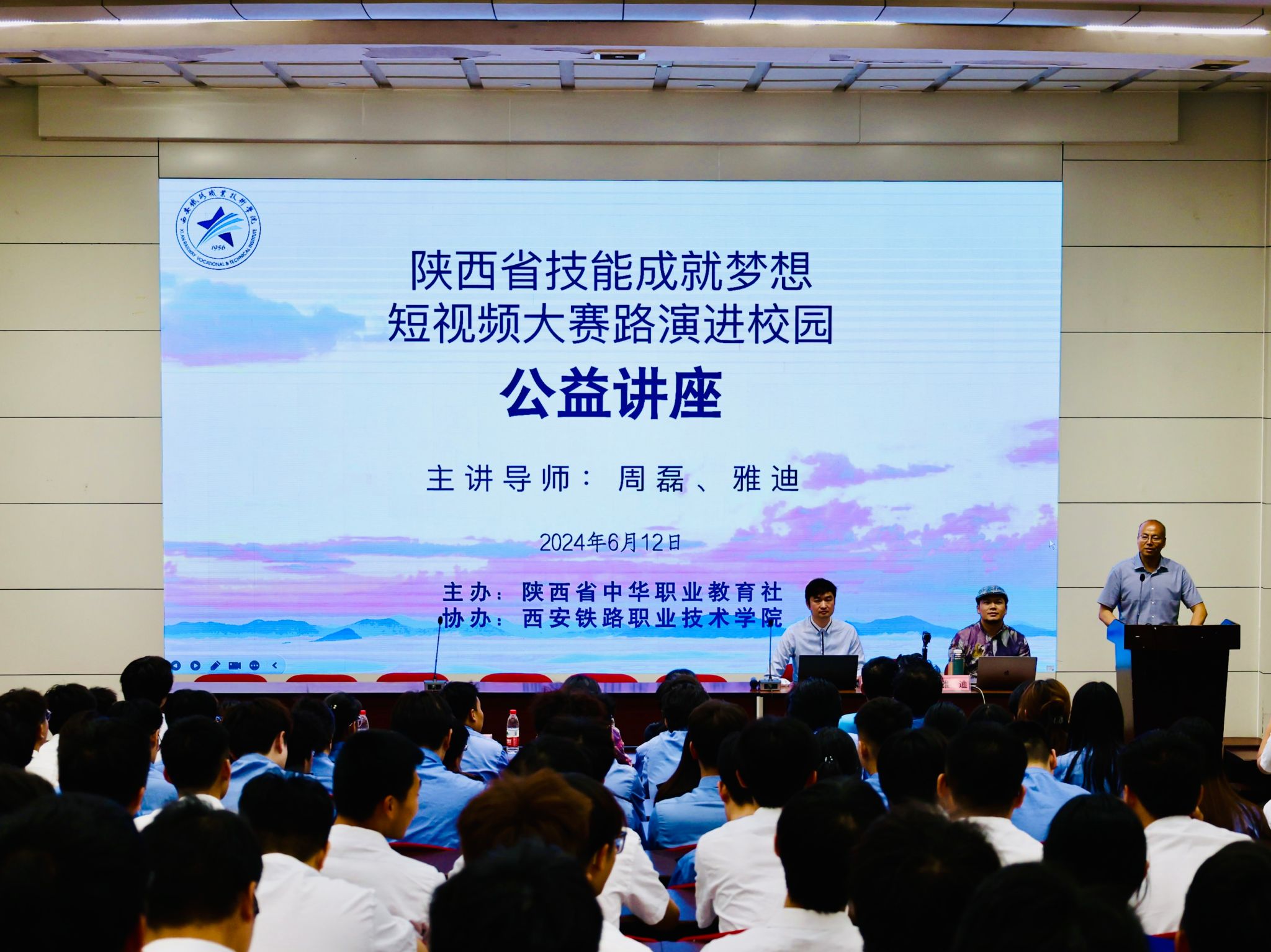 6月12日,由陕西省中华职业教育社主办、必赢bwin线路检测中心协办的“陕西省技能成就梦想短视频大赛路演进校园”公益讲座在自强校区阶梯教室举行。在本次讲座中,陕西省中华职教社特别邀请了业界专家周磊、雅迪两位导师主讲,陕西省政协各界导报主编主任宋海云、卢子涵,交通运输学院党总支书记王秀丽、学院党委学工部副部长孟永辉,以及自强校区电子信息学院、交通运输学院师生代表200余人现场参加。