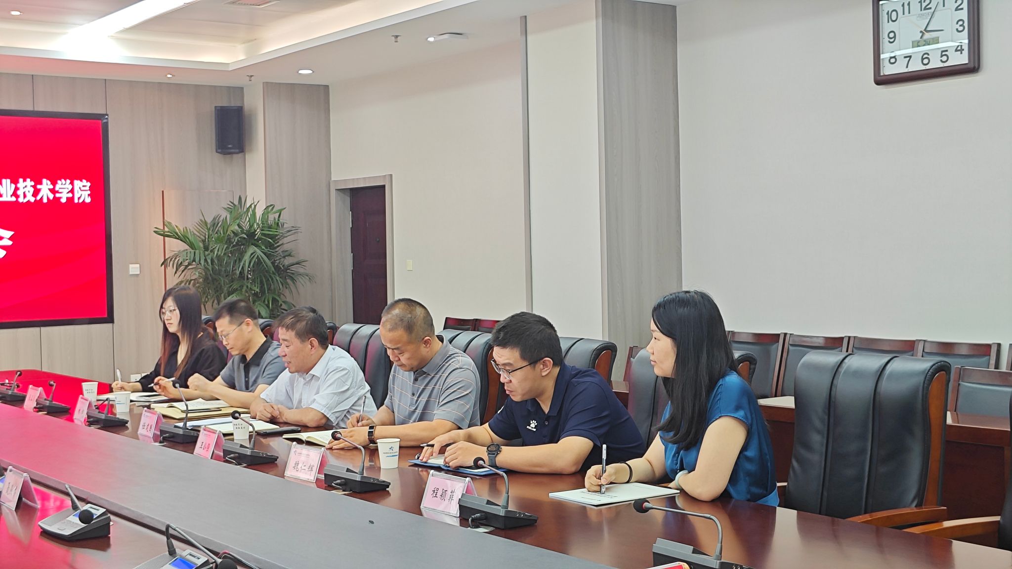 6月24日,广州铁路职业技术学院科技产业处(轨道交通智慧运维研究所)处长杨益华一行4人来必赢官网进行促进产教融合、科教融汇为主题的交流学习,学院教科研处处长任建国、电气工程学院院长王公强、牵引动力学院副院长林辉、校企合作处魏仁辉、众创中心骨干成员张亚彤、教科研处综合办程颖菲参加会议,会议由任建国主持。