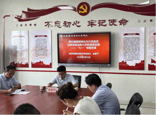 庆祝中国共产党建党103周年,持续推进党纪学习教育走深走实,按照学校党委统一安排和部署,6月26日下午,必赢bwin线路检测中心院长赵春平在西铁院牵引动力学院701政治生活馆为全体党员讲授了“把纪律规矩转化为行动自觉,以务实担当助力学院高质量发展”专题党课,本次党课由西铁院牵引动力学院党总支书记李贞伟主持,西铁院牵引动力学院全体党员参加了此次党课学习。