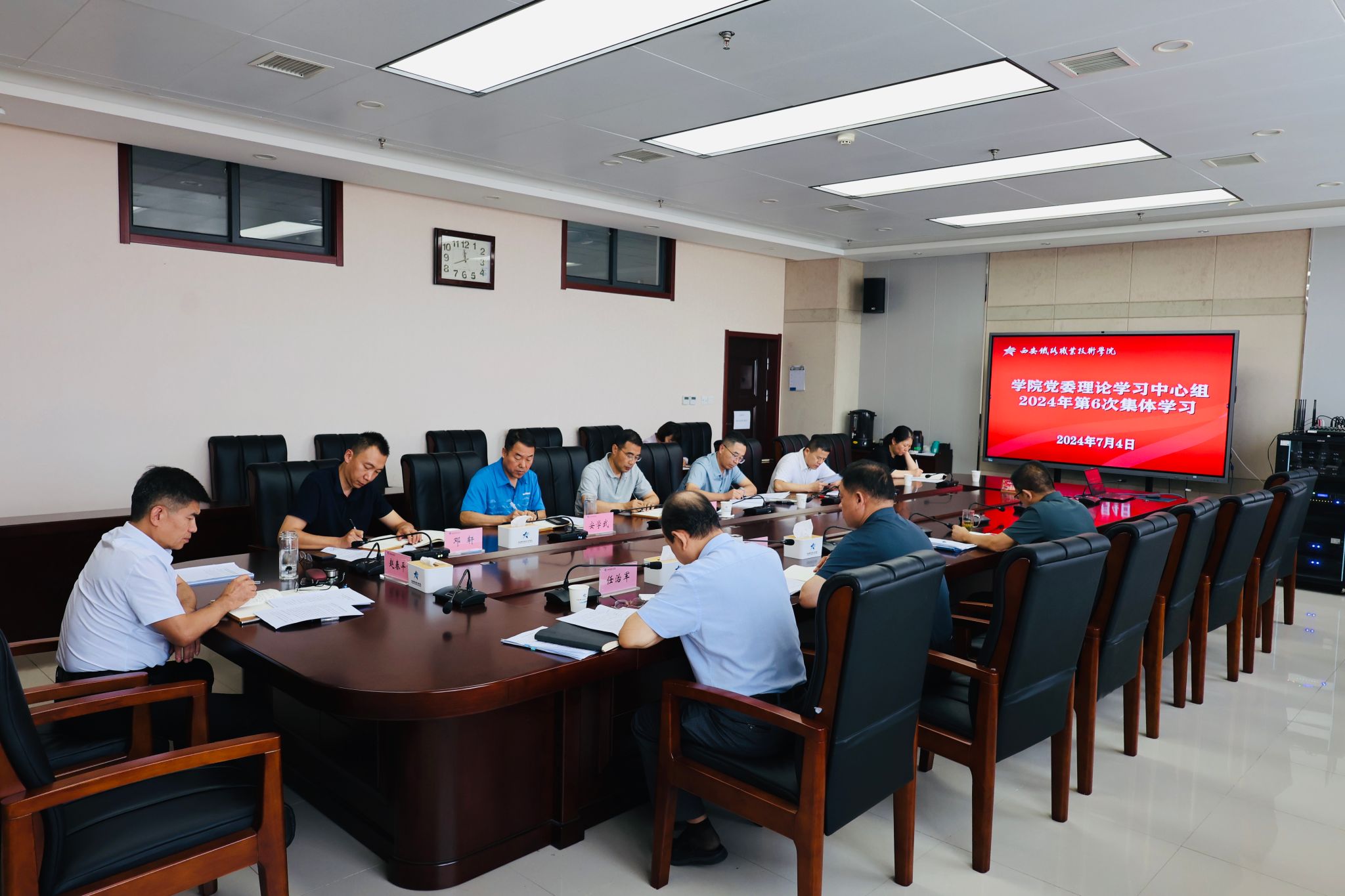 7月4日上午,学院党委理论学习中心组在港务校区举行学习会,领导班子成员及党政办公室、党委组织部、党委宣传部、纪检监察室负责人参加了此次集体学习,院长赵春平主持学习会。