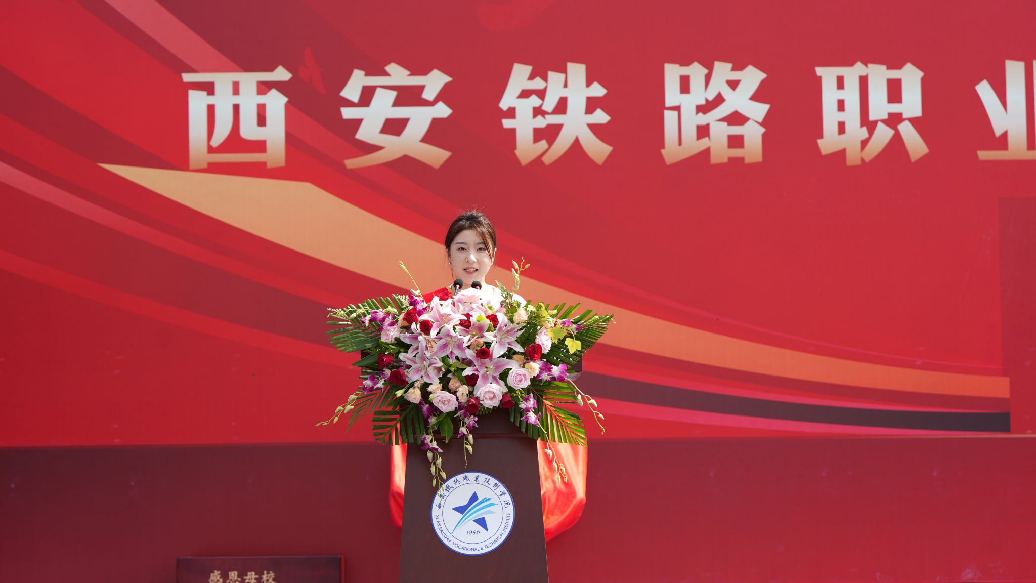 机电工程学院的肖媛媛同学代表全体毕业生发言,表达了对母校和老师们的感激之情。她动情地说:“三年前,我们带着梦想走进了西铁院,如今我们带着成就和希望离开。感谢母校,感谢老师,愿大家在未来的日子里,一帆风顺,前程似锦!”